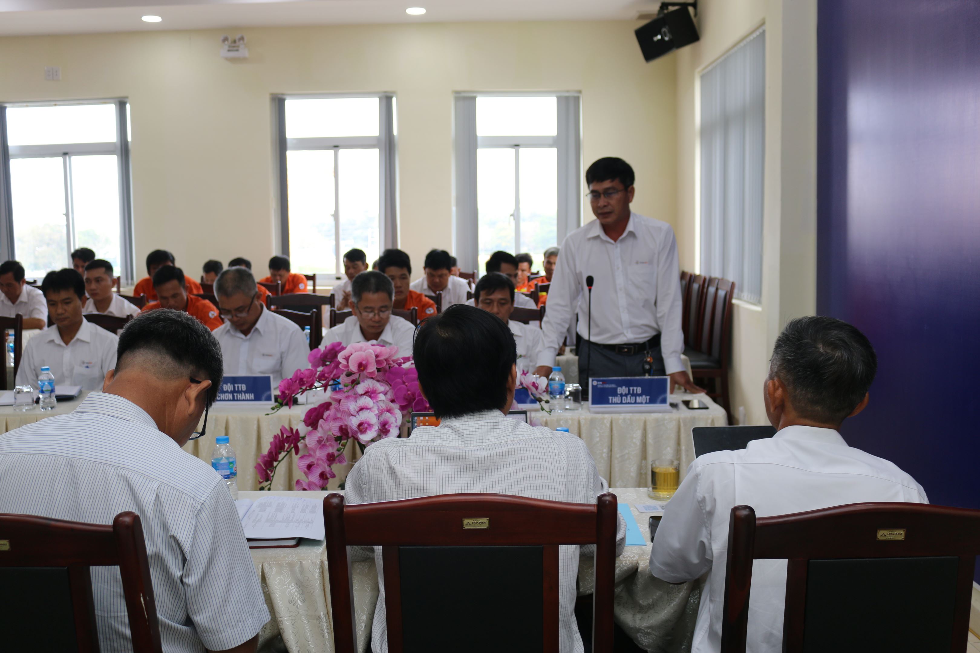 Anh Nguyễn Văn Huân - Đội Trưởng Đội TTĐ Chơn Thành trình bày giải pháp về đảm bảo kế hoạch & chất lượng vệ sinh sứ tại hội nghị