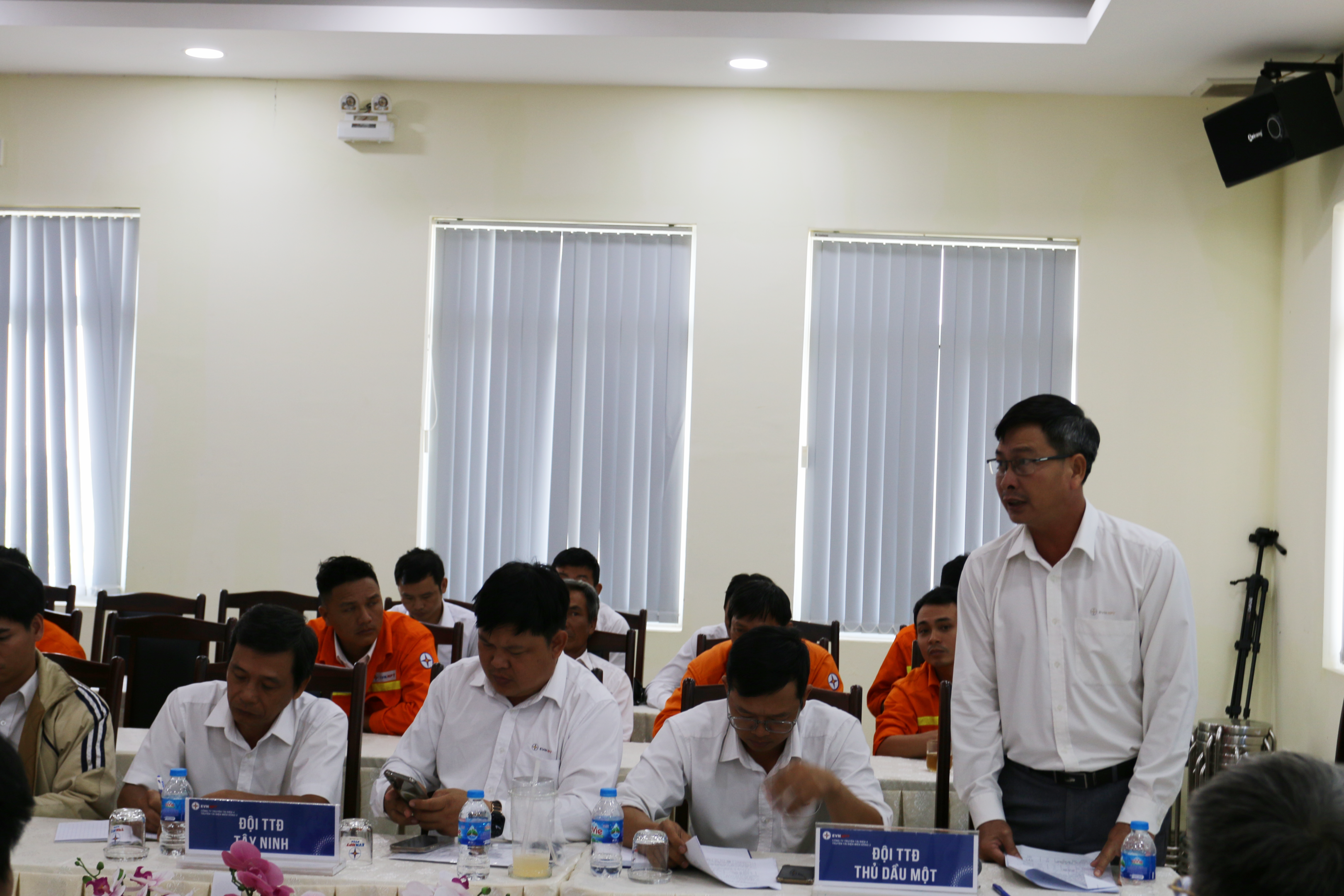 Đ/c Phan Công Khiêm - Đội phó đội Truyền tải điện Thủ Dầu Một phát biểu tại hội nghị.