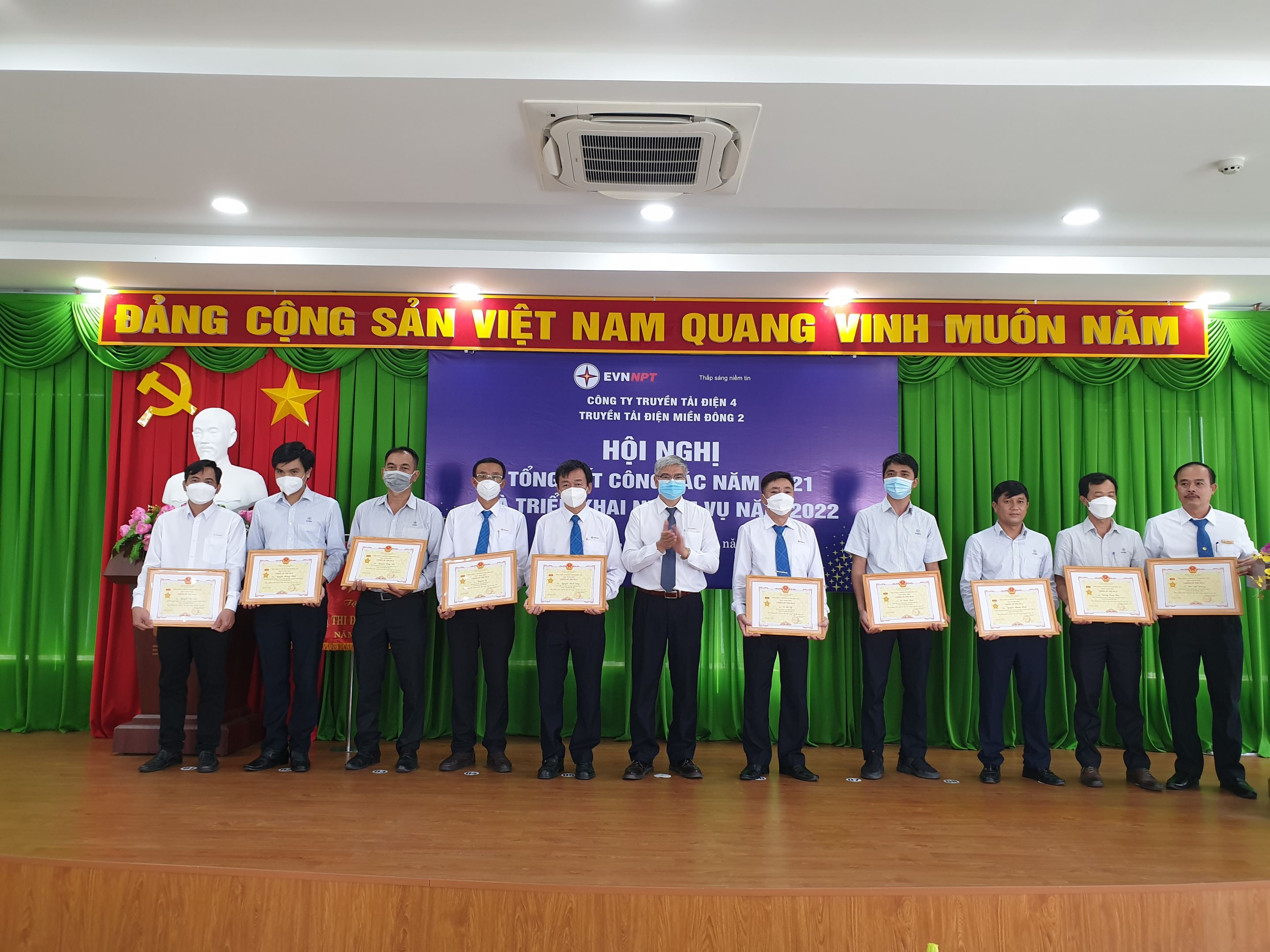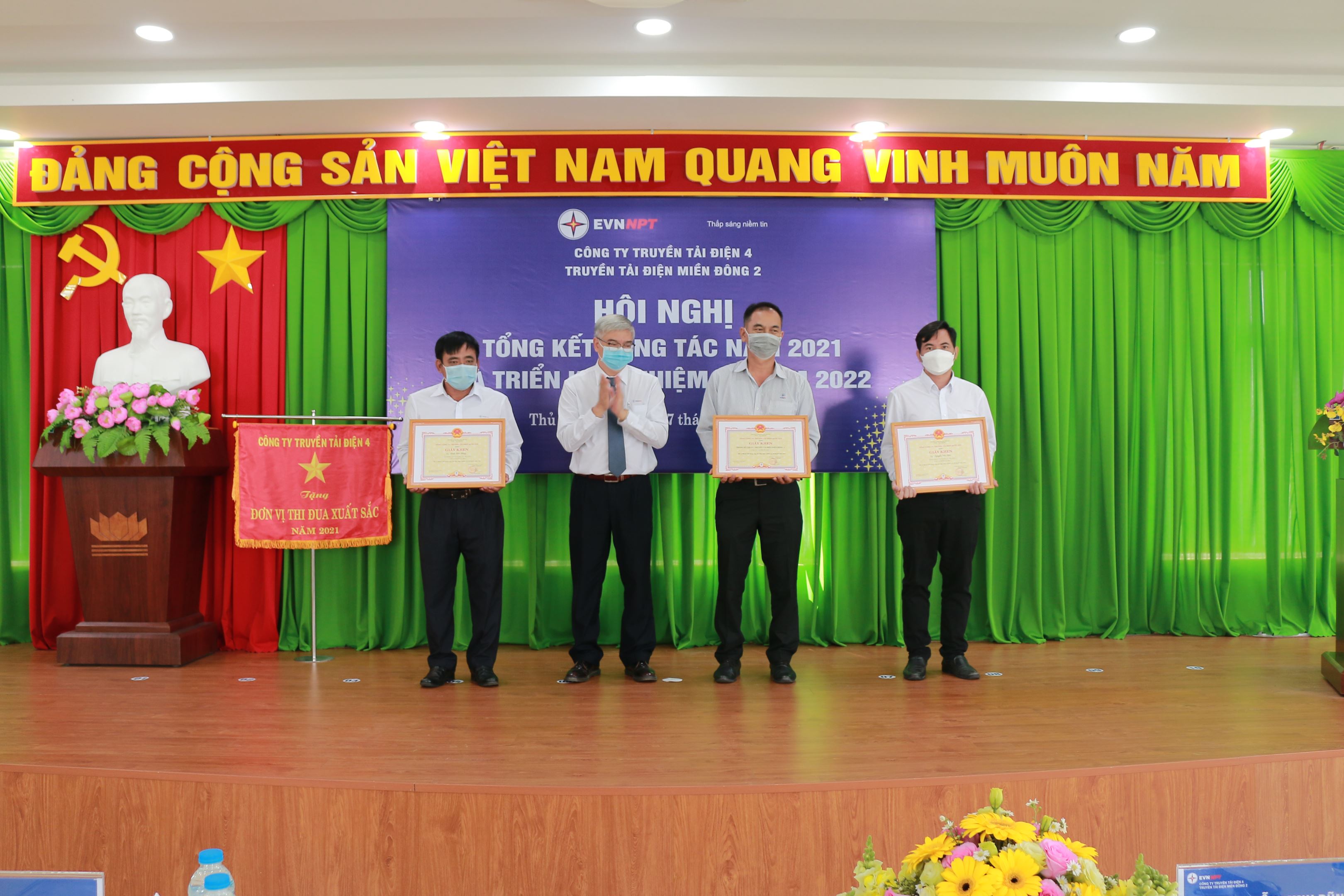 Nhân dịp này Truyền tải điện miền Đông 2 đã tổ chức trao Bằng khen Tập đoàn Điện Lực Việt Nam; Giấy khen Tổng Công ty Truyền tải điện Quốc gia; Chiến sỹ thi đua cơ sở các giấy khen của Công ty Truyền tải điện 4 cho các tập thể và cá nhân đạt thành tích xuất sắc trong công tác Đảng và sản xuất năm 2021.