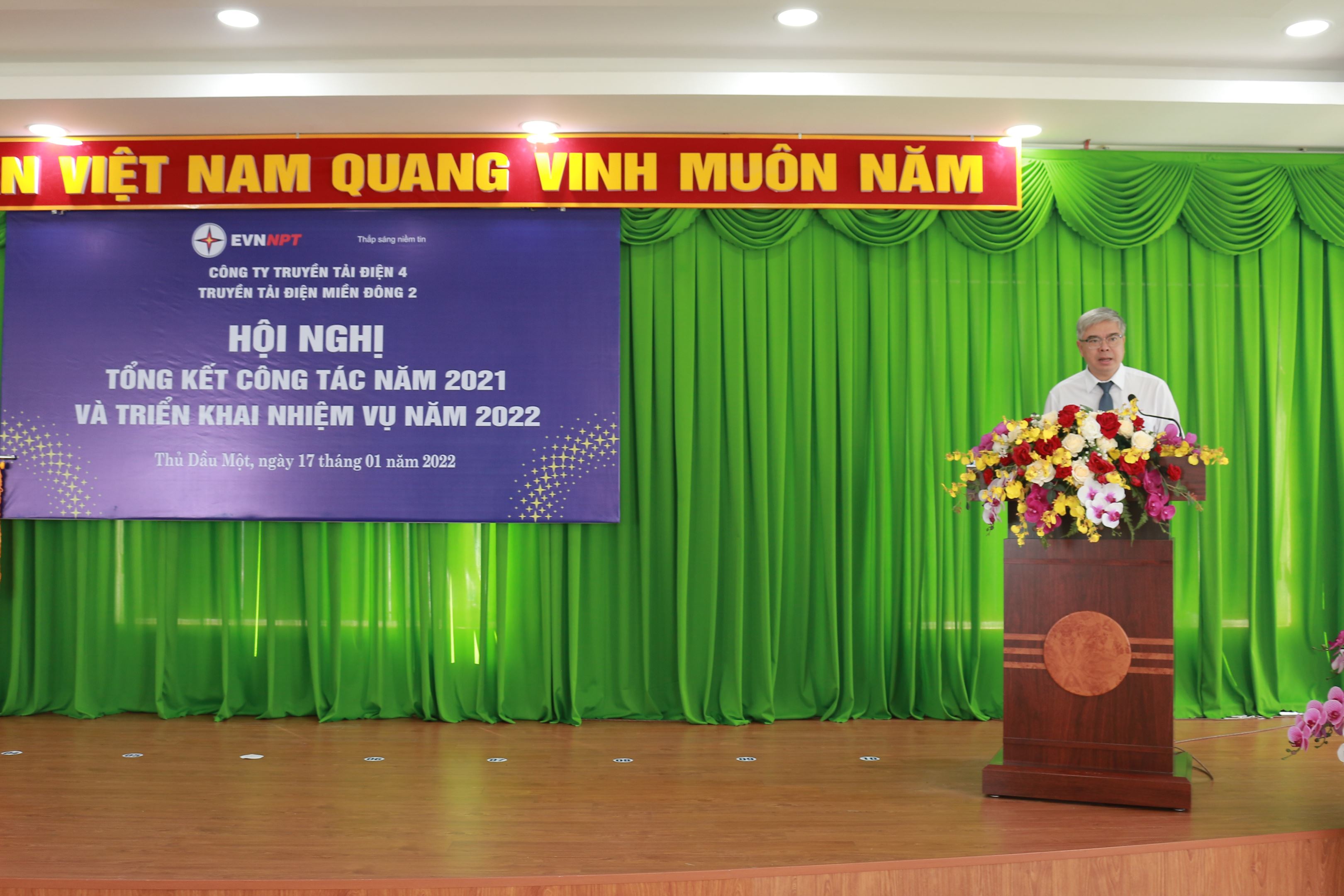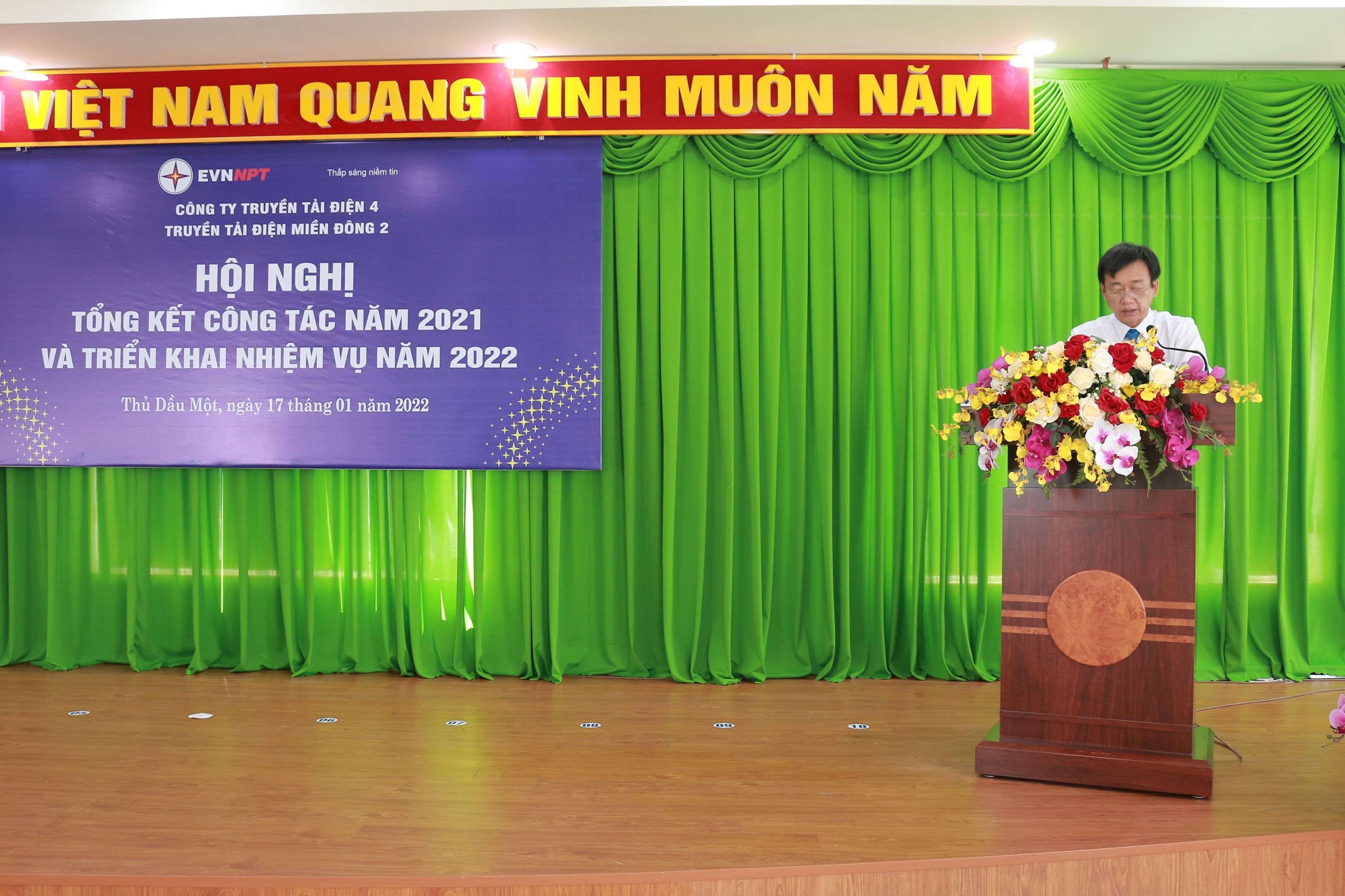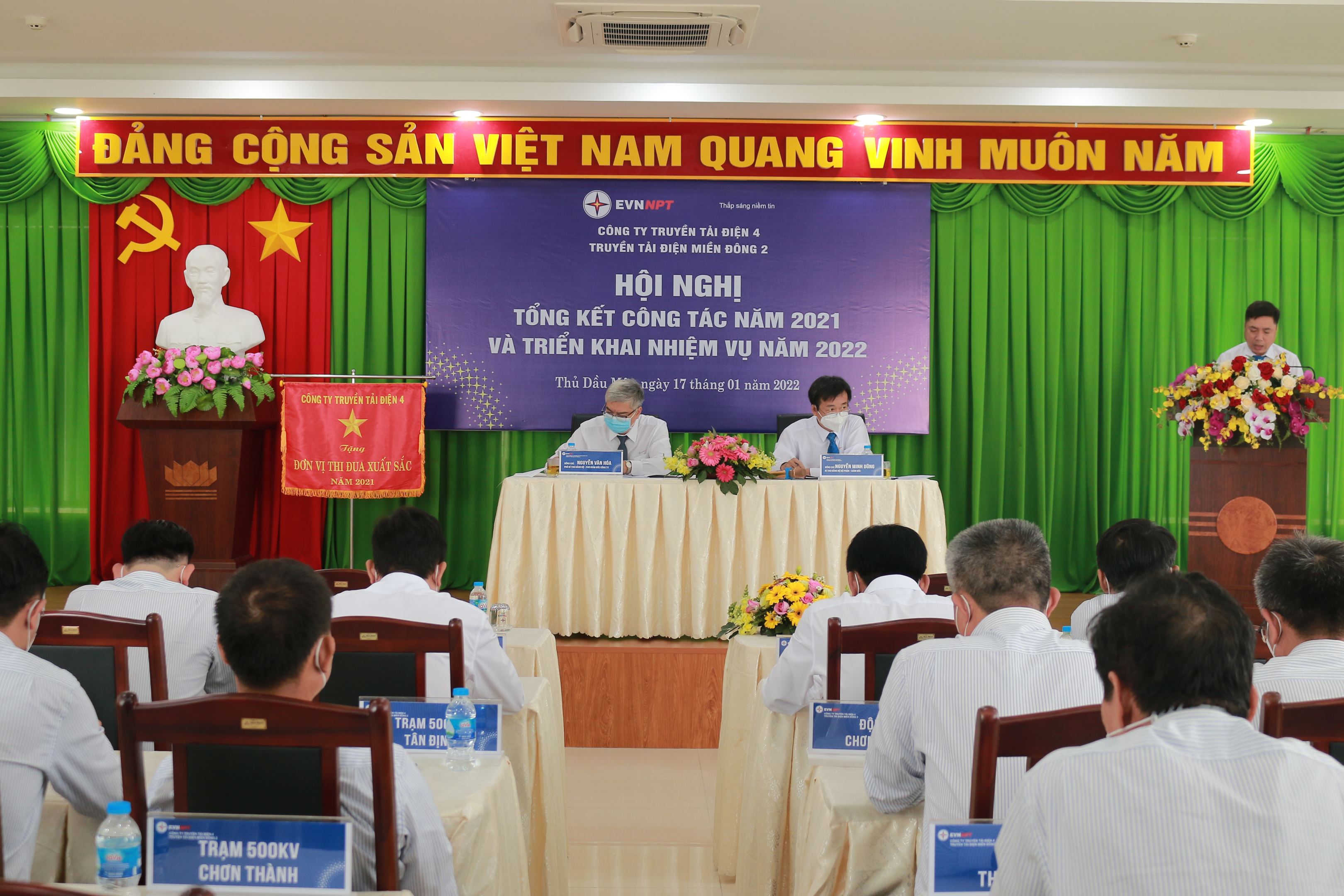 Phát biểu chỉ đạo tại Hội nghị, đ/c Nguyễn Văn Hóa, Phó bí thư Đảng ủy, Phó Giám đốc Công ty biểu dương tinh thần đoàn kết phấn đấu hoàn thành nhiệm vụ của tập thể CBCNV TTĐMĐ2 đã góp phần hoàn thành mục tiêu chung của Công ty trong việc đảm bảo vận hành an toàn trước tình hình dịch bệnh Covid – 19 và đạt được thành quả trong năm 2021. Đồng chí mong muốn TTĐMĐ2 tiếp tục triển khai thực hiện tốt chủ đề năm 2022, phát huy những thế mạnh, khắc phục những tồn tại hạn chế trong năm qua của công tác đảng và chuyên môn để có thể vượt qua những khó khăn thử thách của năm 2022 và hoàn thành nhiệm vụ do Công ty giao, mục tiêu phải đạt được là đảm bảo vận hành an toàn, không để xảy ra sự cố chủ quan,đẩy mạnh ứng dụng khoa học công nghệ, tập trung thực hiện Chủ đề năm 2022 là ”Thích ứng an toàn, linh hoạt và hiệu quả” góp phần xây dựng hệ thống truyền tải điện Quốc gia hiện đại, chuyên nghiệp và hiệu quả