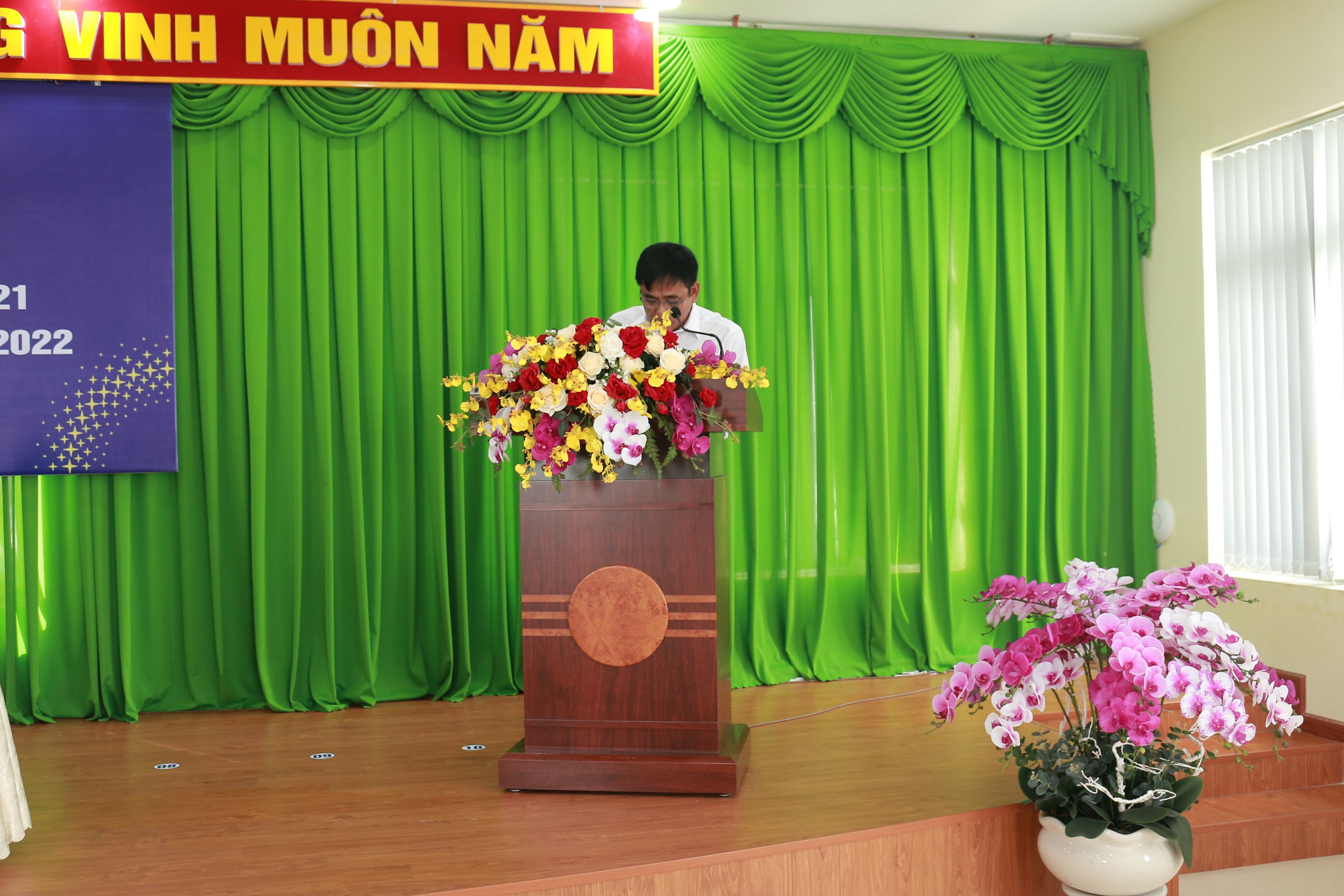Đ/c Lê Thế Sỹ - Phó Bí thư Đảng bộ phận , Phó Giám đốc TTĐMĐ22 đọc báo cáo tổng kết năm 2021