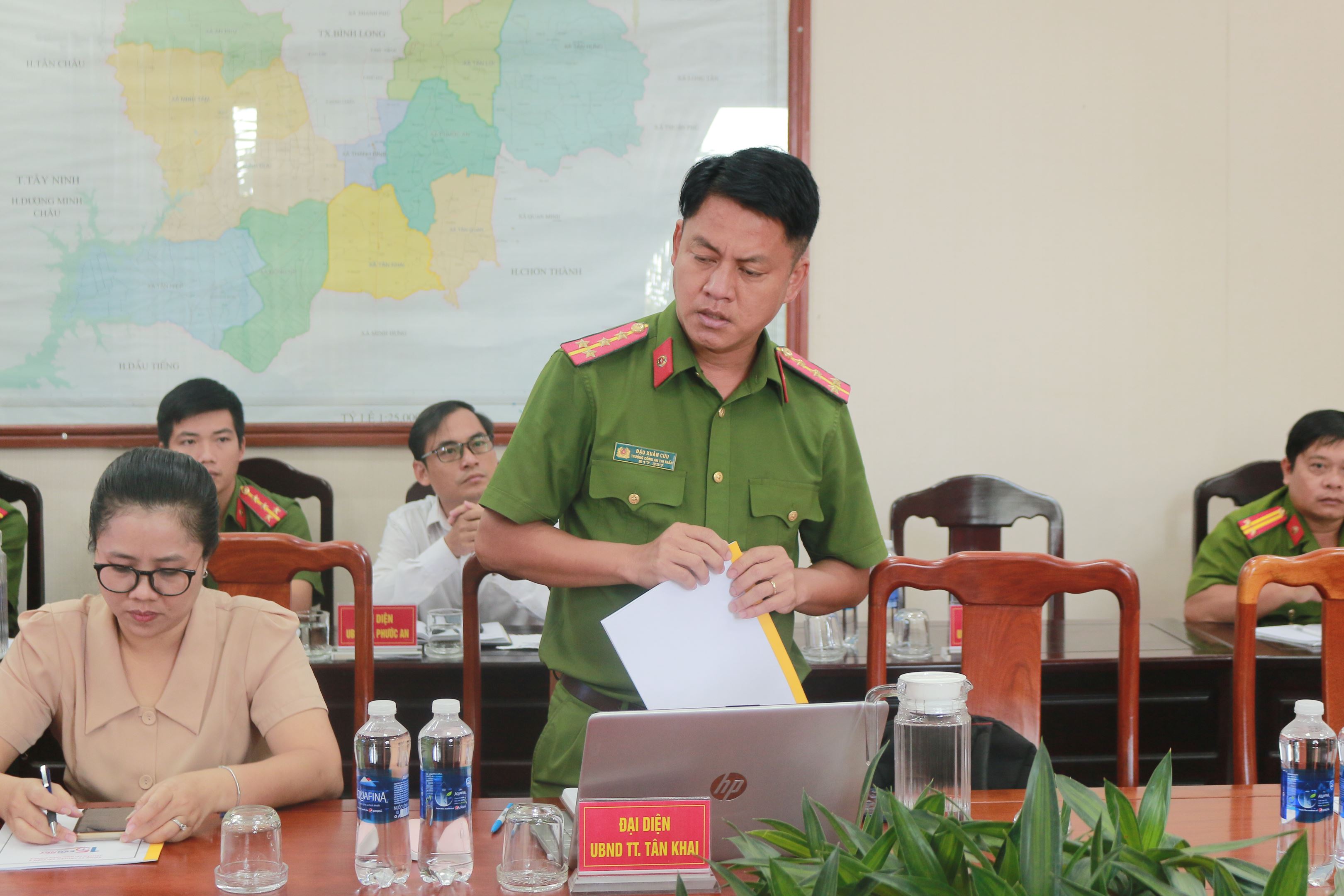 Ông Nguyễn Văn Trung -Trưởng Công an thị trấn Tân Khai , huyện Hớn Quản phát biểu tại hội nghị.