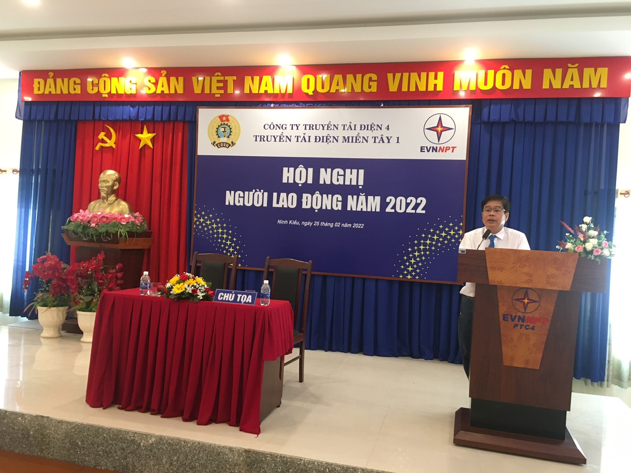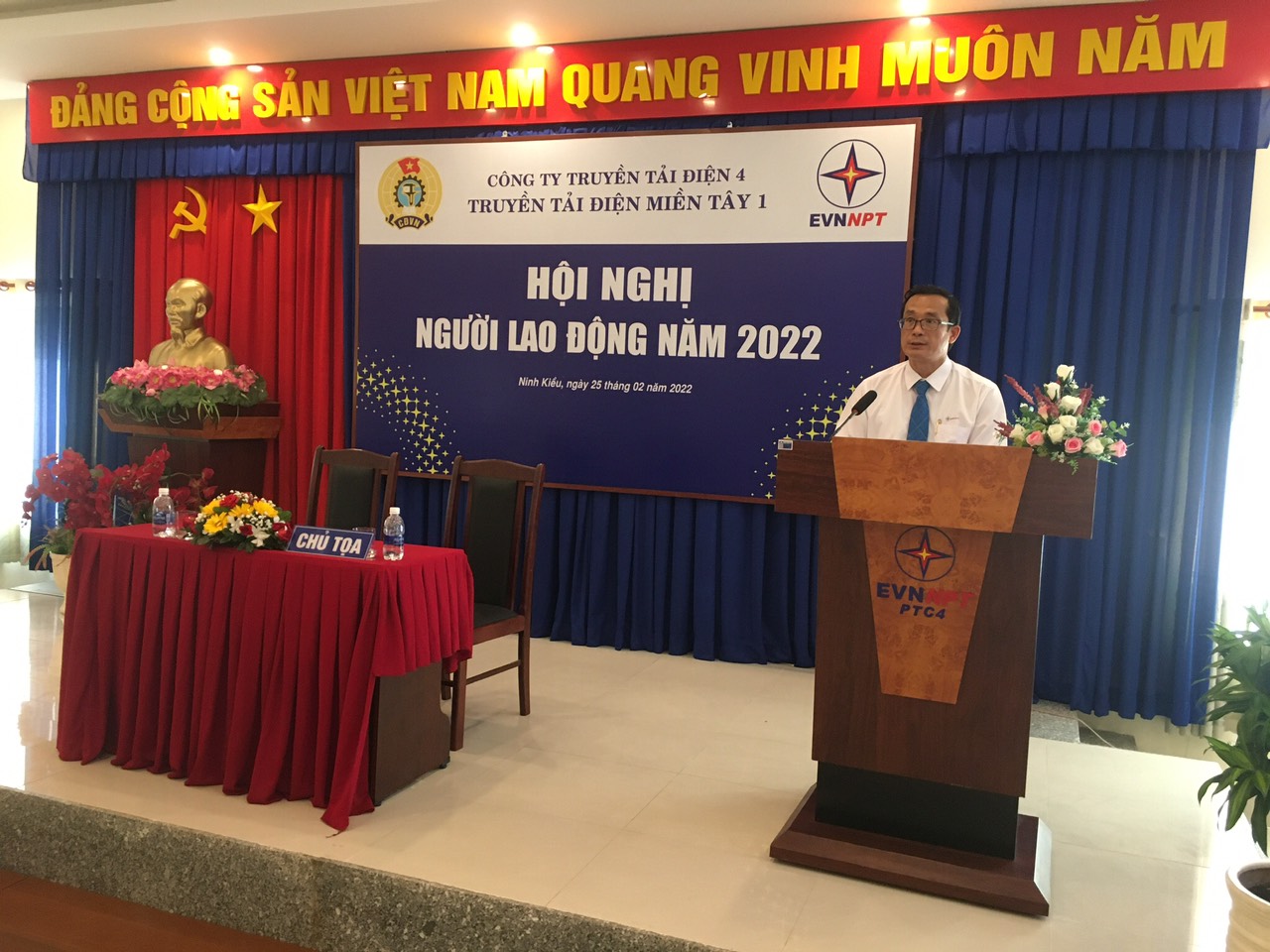 Phát biểu chỉ đạo tại Hội nghị, Ông Nguyễn Phương Nam - Chủ tịch Công đoàn Công ty, đánh giá cao thành tích của Truyền tải điện miền Tây 1 năm 2021 trong công tác quản lý vận hành cũng như việc thực thi Văn hóa EVNNPT, đặc biệt trong thời gian tập trung vận hành do đại dịch Covid – 19 diễn biến phức tạp. Phát huy tinh thần đoàn kết, tương thân tương ái hoàn thành tốt nhiệm vụ trong năm 2022. Qua đó Ông cũng giải đáp thêm một số kiến nghị của các Phòng, Tổ, Đội, Trạm.