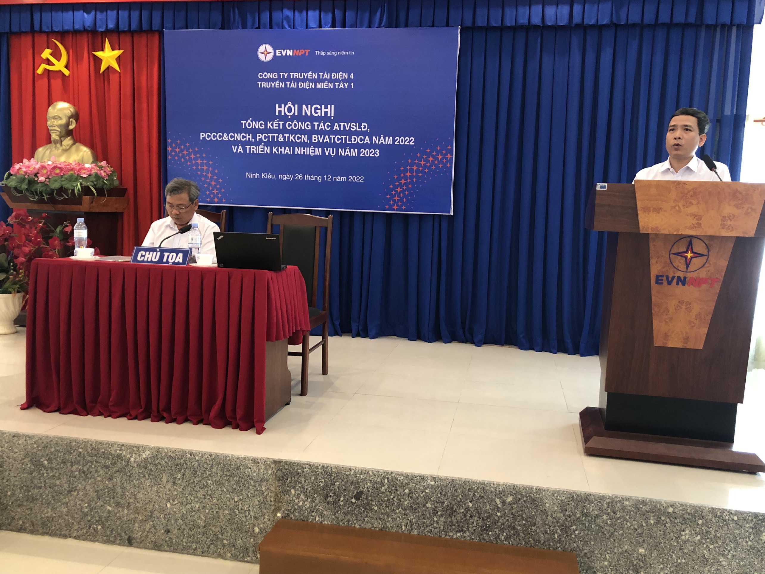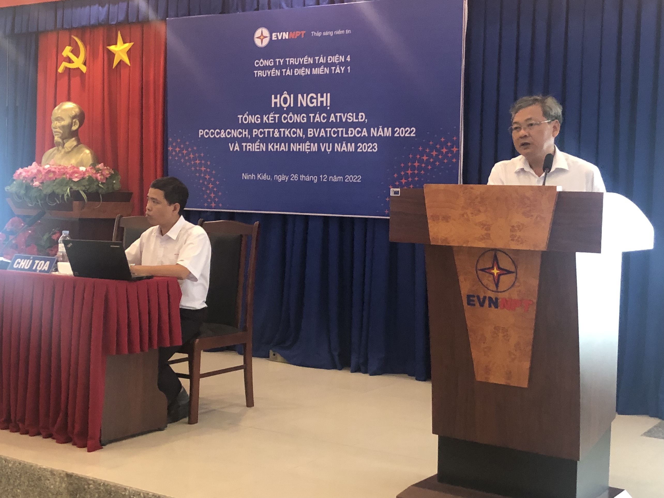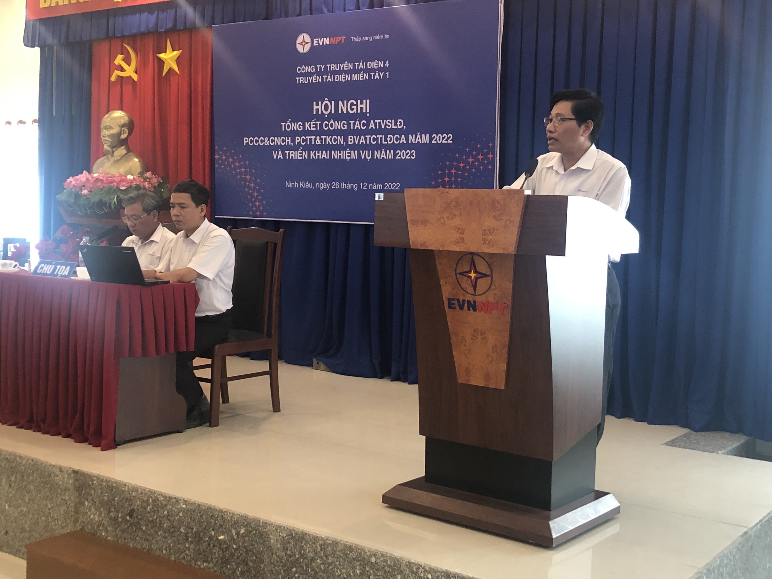 Phát biểu chỉ đạo tại Hội nghị, Ông Trần Quốc Hiệu – Bí Thư Đảng bộ BP, Giám Đốc TTĐMT1 ghi nhận và biểu dương các thành tích đạt được trong năm 2022 đối với công tác PCCC&CNCH, PCTT&TKCN, BVATCTLĐCA, đồng thời nhắc nhở các Phòng, Tổ, Đội, Trạm chú trọng thực hiện công tác theo dõi và khám sức khỏe định kỳ cho người lao động đúng theo quy định, nhắc nhở tất cả các CBCNV phải luôn tuân thủ các quy trình, quy phạm, phải lập phương án, trình duyệt trước khi thi công, thực hiện nghiêm ngặt công tác an toàn trong mọi hoạt động. Trong nội dung phát biểu, Ông Hiệu cũng chỉ đạo một số công tác trọng tâm cần thực hiện trong thời gian tới.