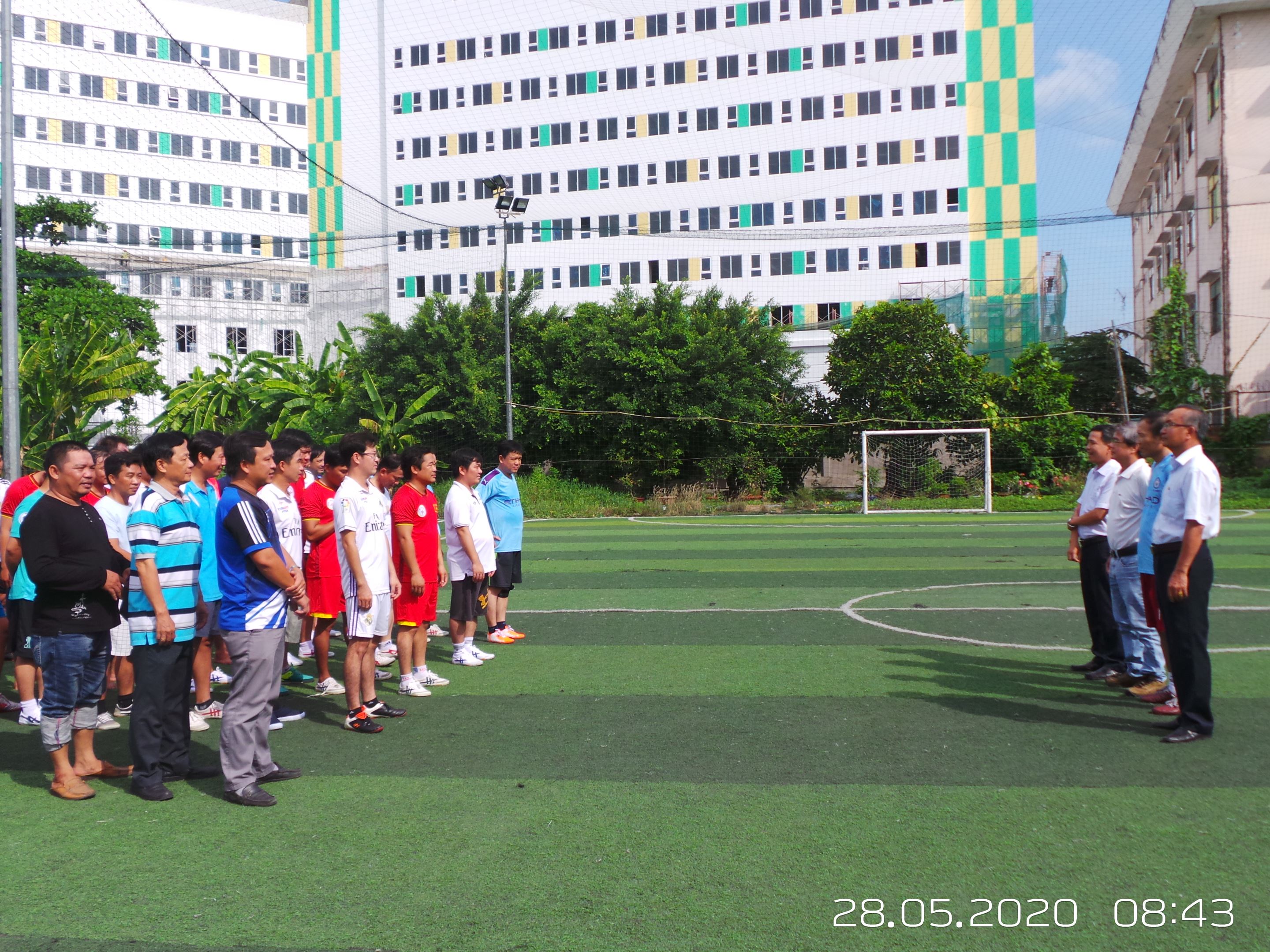 Đội bóng liên quân (Đội DVKT TTĐMT1,các Phòng và đội cơ động TTĐMT1, áo xanh) đang thi đấu với Đội bóng liên quân (Đội TTĐ Ninh Kiều, Tổ TTLĐ Ô Môn, áo đỏ).