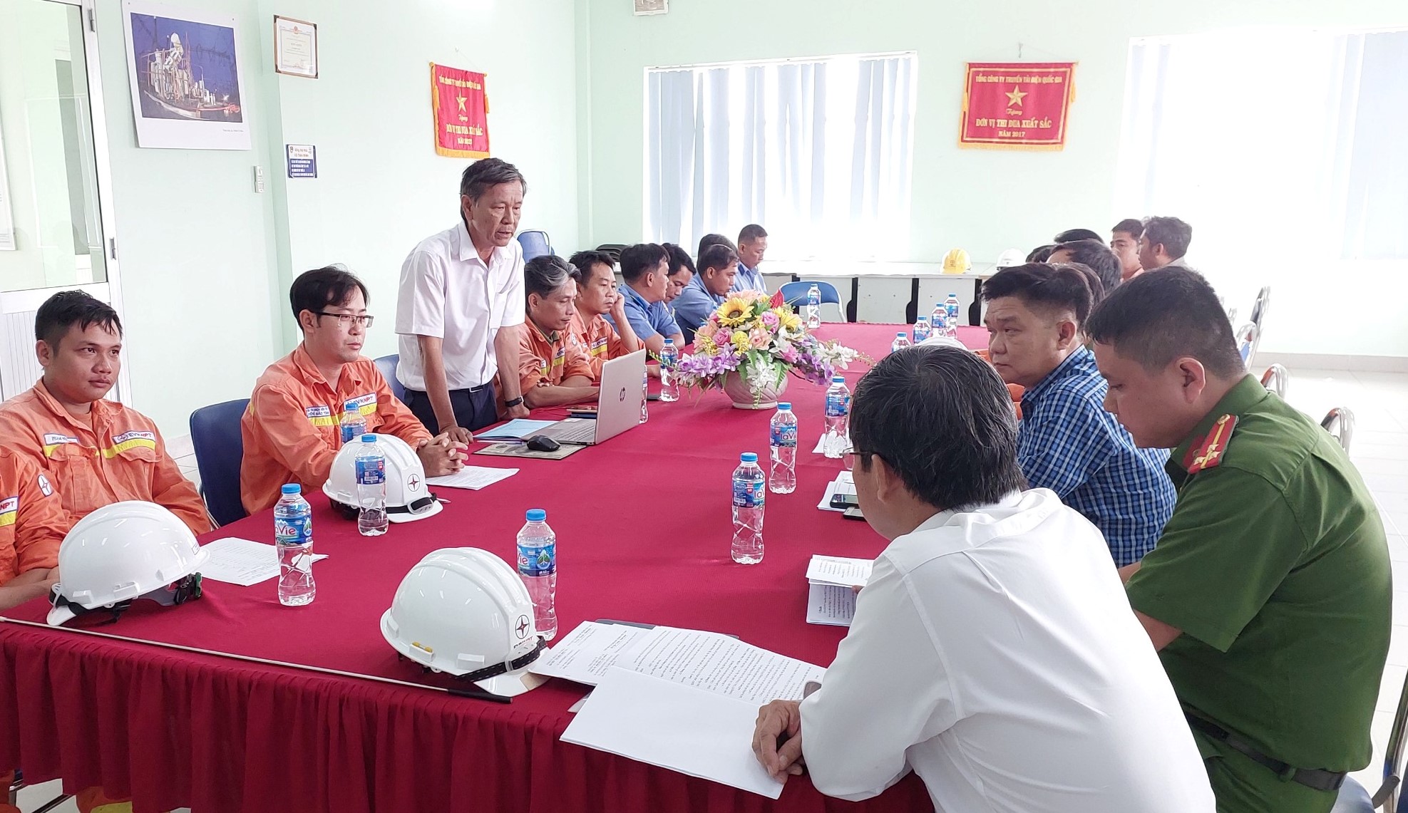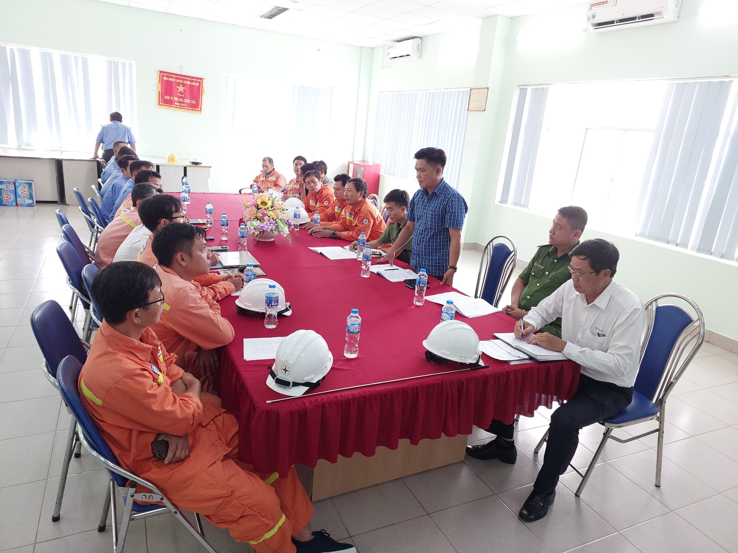 Phát biểu tại buổi diễn tập, Ông Nguyễn Hồng Phong Công an phường Phước Thới thông qua tình hình an ninh chính trị và trật tự xã hội trong khu vực, một số phương thức phối hợp giữa Công an phường và trạm 500kV Ô Môn, hướng dẫn nhận viên bảo vệ cách nhận biết đối tượng khả nghi khi tuần tra canh gác.