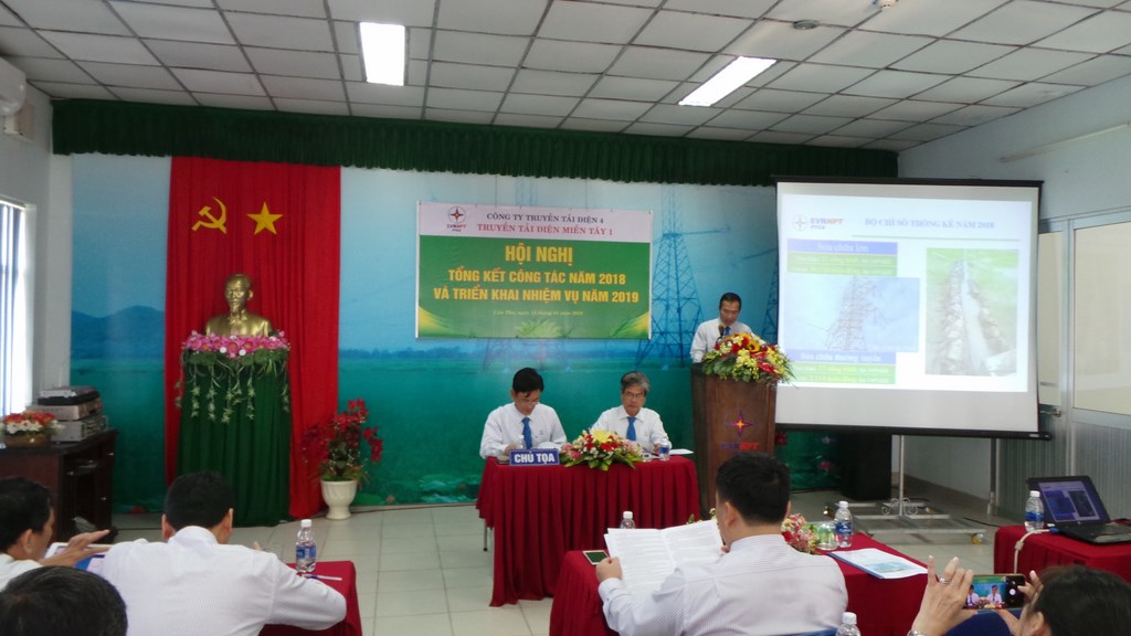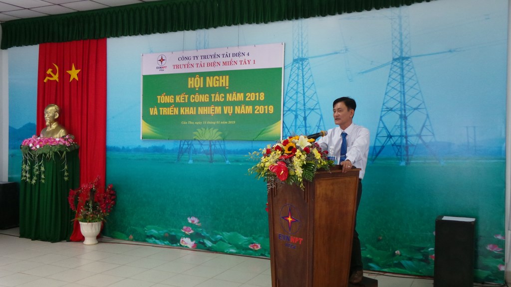 Báo cáo tại Hội nghị, đồng chí Phạm Ngọc Luật - Phó Giám Đốc TTĐ Miền Tây 1, thay mặt lãnh đạo đơn vị cho biết: Do nhu cầu phụ tải ngày càng tăng, Truyền tải điện miền Tây 1 đã nỗ lực không ngừng vươn lên theo kịp với sự phát triển của lưới điện quốc gia. Mặc dù nhiệm vụ rất nặng nề và quan trọng, quản lý lưới điện cao thế trên vùng sông nước, nhưng trong năm qua, với sự chỉ đạo của Lãnh đạo các cấp, Chi Ủy đã chỉ đạo trực tiếp các Đoàn thể và chuyên môn, thực hiện các giải pháp ngăn ngừa sự cố, nên trong năm 2018, lưới điện do đơn vị quản lý vận hành an toàn liên tục, không sự cố, đạt chỉ tiêu sự cố do Công Ty Truyền Tải Điện 4 giao, sản lượng truyền tải trong năm 2018 đạt trên 5 tỷ Kwh, đạt chỉ tiêu về tổn thất, tỷ lệ tổn thất là 1,02%, giảm 0,05% so với năm 2017, điện tự dùng tiết kiệm trên 6%. Trong năm 2018 Đơn vị thực hiện 11/08 sáng kiến, vượt 37,5% chỉ tiêu Công ty giao ... Các công trình sửa chữa lớn, công trình sửa chữa thường xuyên và một số công tác khác TTĐ Miền Tây 1 thực hiện hoàn tất theo kế hoạch ...