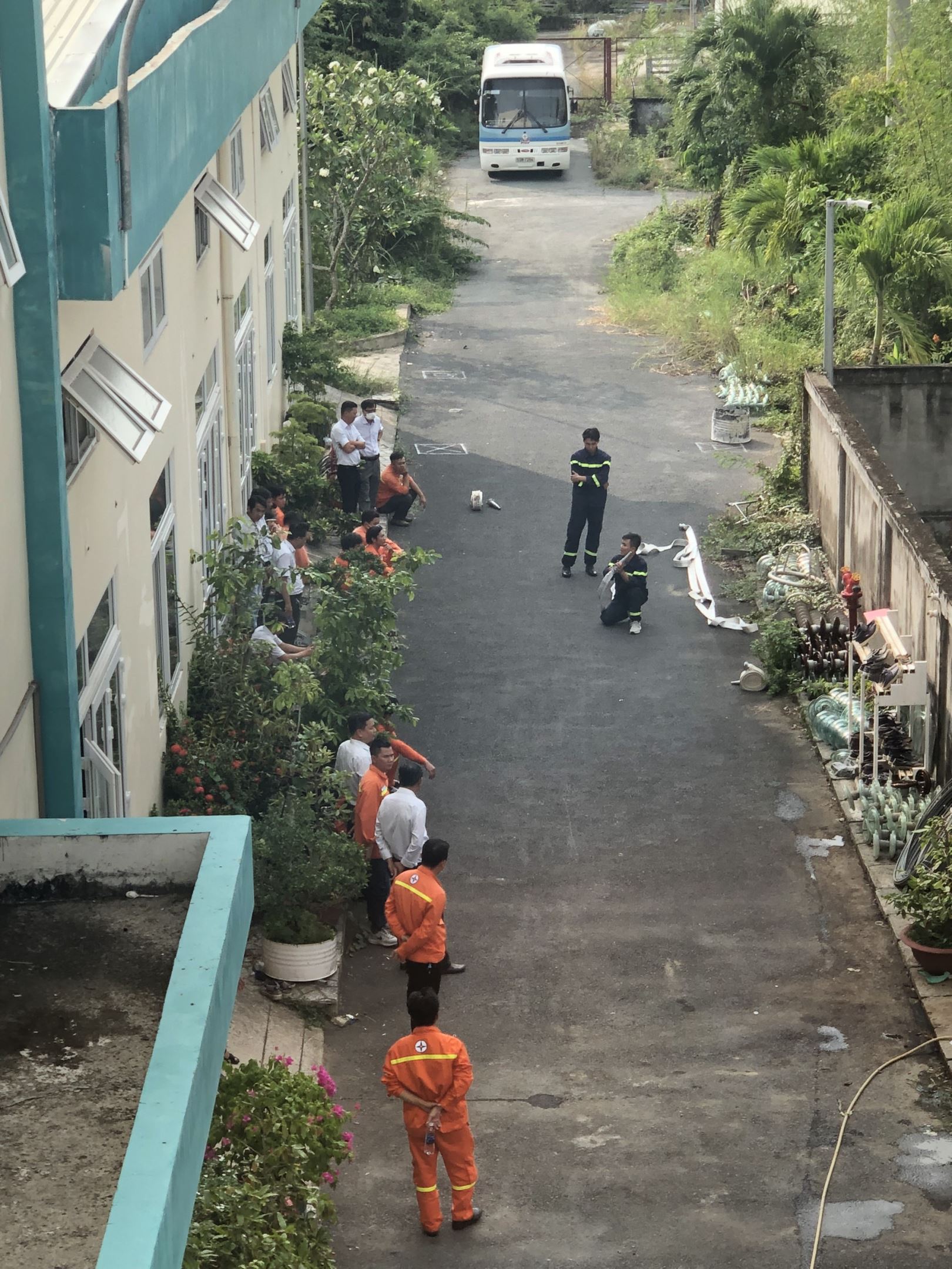 Các Cán bộ Đội Công tác phòng cháy và cứu nạn, cứu hộ, hướng dẫn các phương pháp chữa cháy tại chỗ.