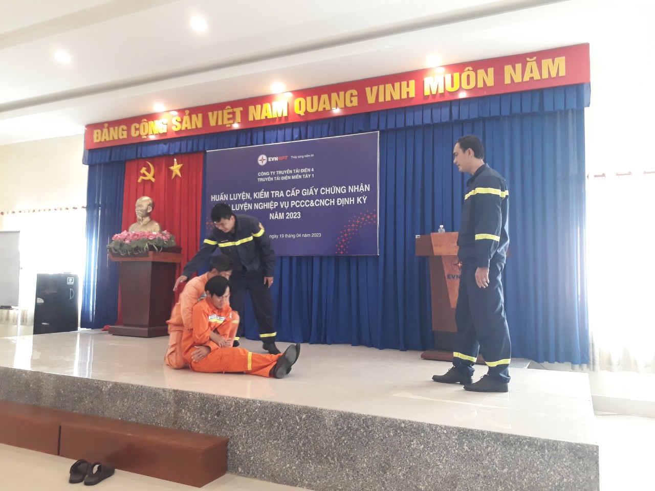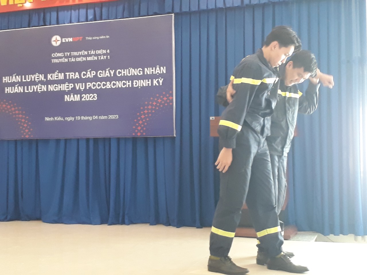 Trực tiếp huấn luyện lớp học là đồng chí Đại úy Nguyễn Anh Tuấn – Phó Đội Trưởng Đội Công tác phòng cháy và cứu nạn, cứu hộ và Thượng úy Nguyễn Ngọc Minh – Cán bộ Đội Công tác phòng cháy và cứu nạn, cứu hộ - Phòng Cảnh sát PCCC&CNCH – Công an Thành phố Cần Thơ. cùng 136 CBCNV của Truyền tải điện miền Tây 1 khu vực thành phố Cần Thơ cùng tham gia lớp huấn luyện.