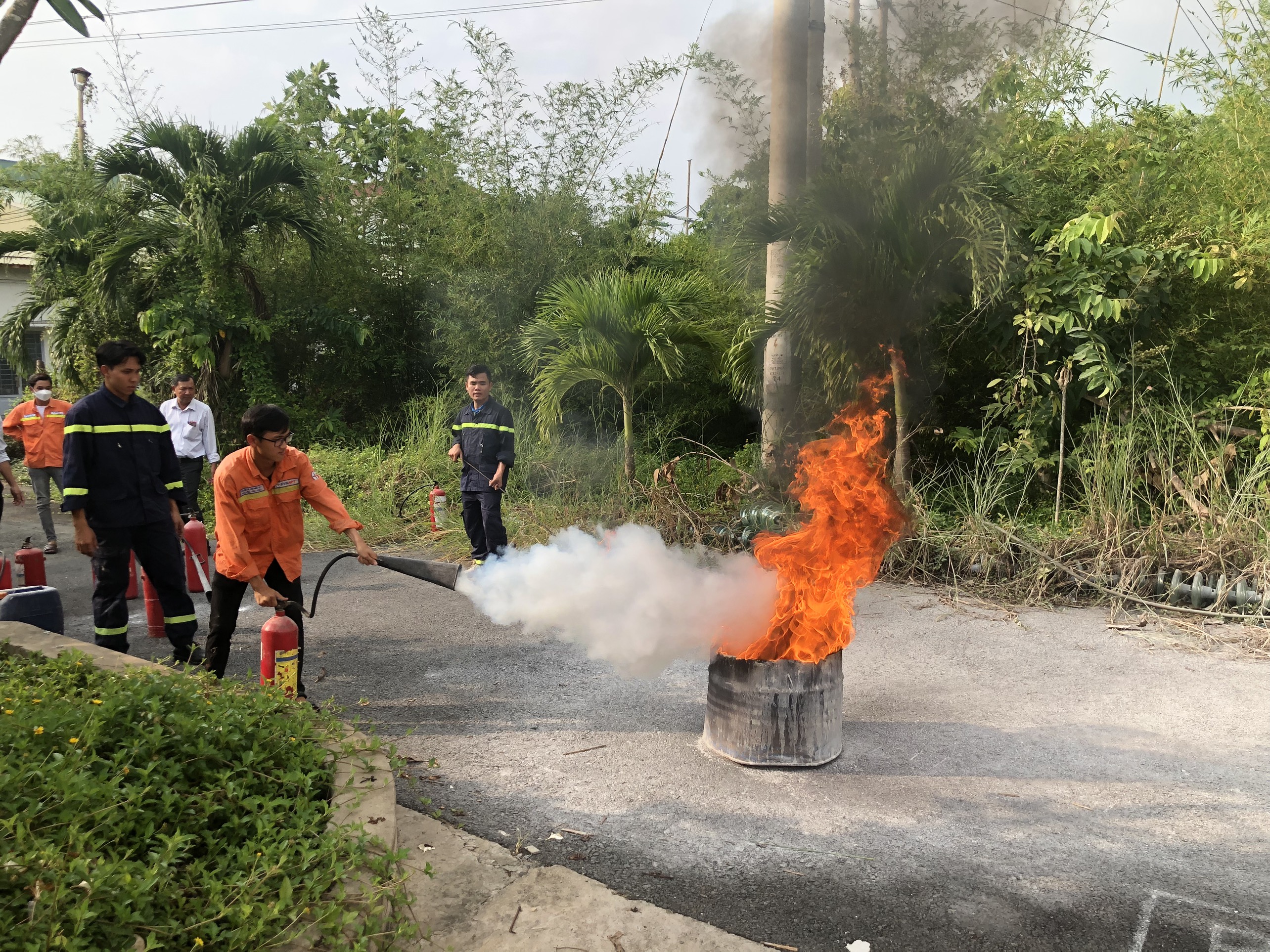 Các CBCNV của Truyền tải điện miền Tây 1 thực hành các phương pháp chữa cháy tại chỗ.