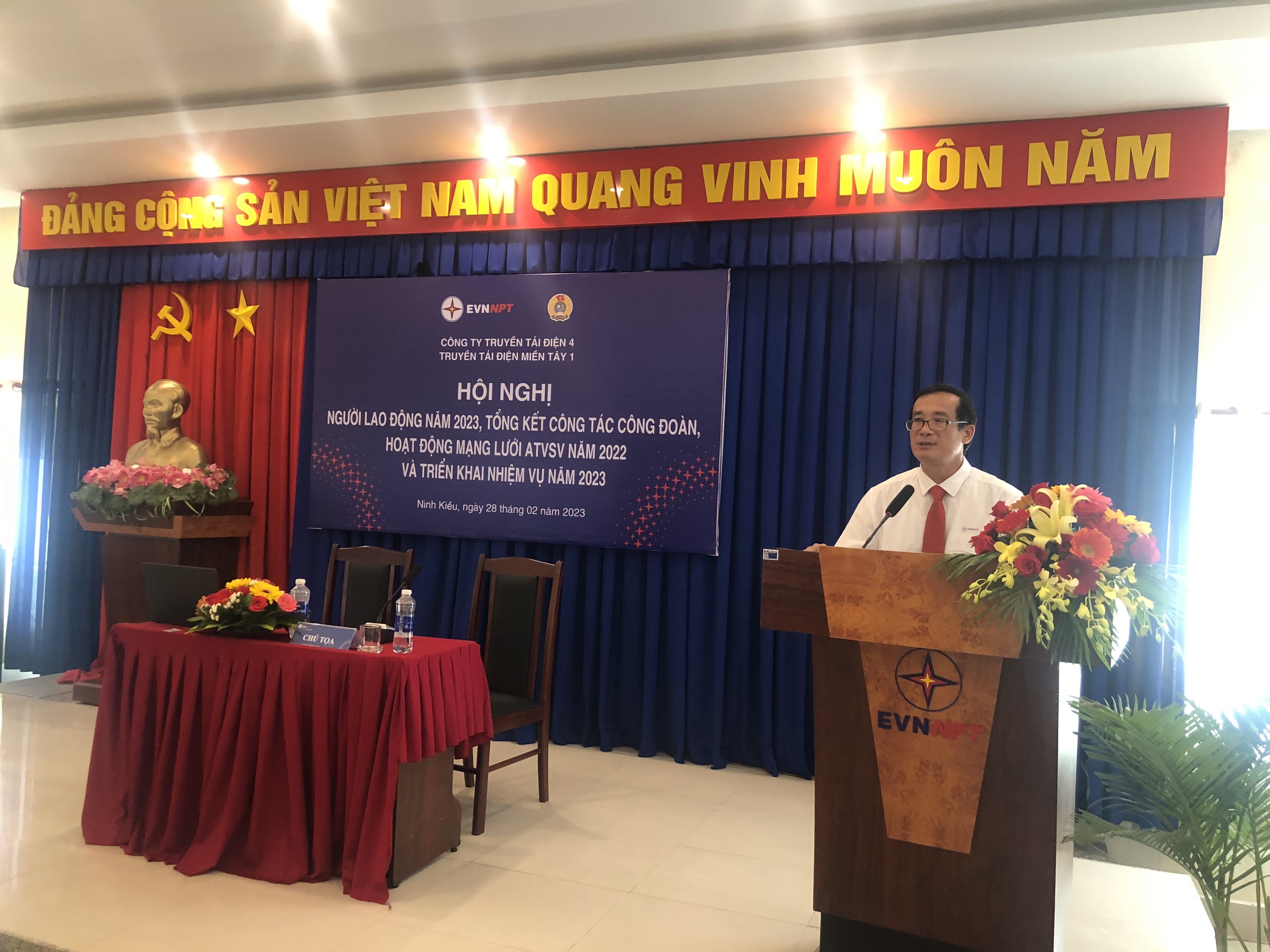 Trong bài phát biểu, Chủ tịch Công đoàn Công ty cũng lưu ý một số công tác an toàn vệ sinh lao động, an toàn giao thông. an toàn trong môi trường làm việc, đảm bảo mỗi cán bộ công nhân viên (CBCNV) tự giác tuân thủ quy trình, quy phạm, tuyệt đối an toàn trong mọi công tác … Chú trọng công tác đào tạo nguồn nhân lực, tăng năng suất lao động, khuyến khích và tạo điều kiện cho CBCNV học tập nâng cao trình độ, bắt kịp công nghệ thông minh nơi, đáp ứng yêu cầu công việc …Chủ tịch Công đoàn Công ty hy vọng trong năm 2023 Truyền tải điện miền Tây 1 sẽ tiếp tục hoàn thành tất cả các nhiệm vụ được giao.