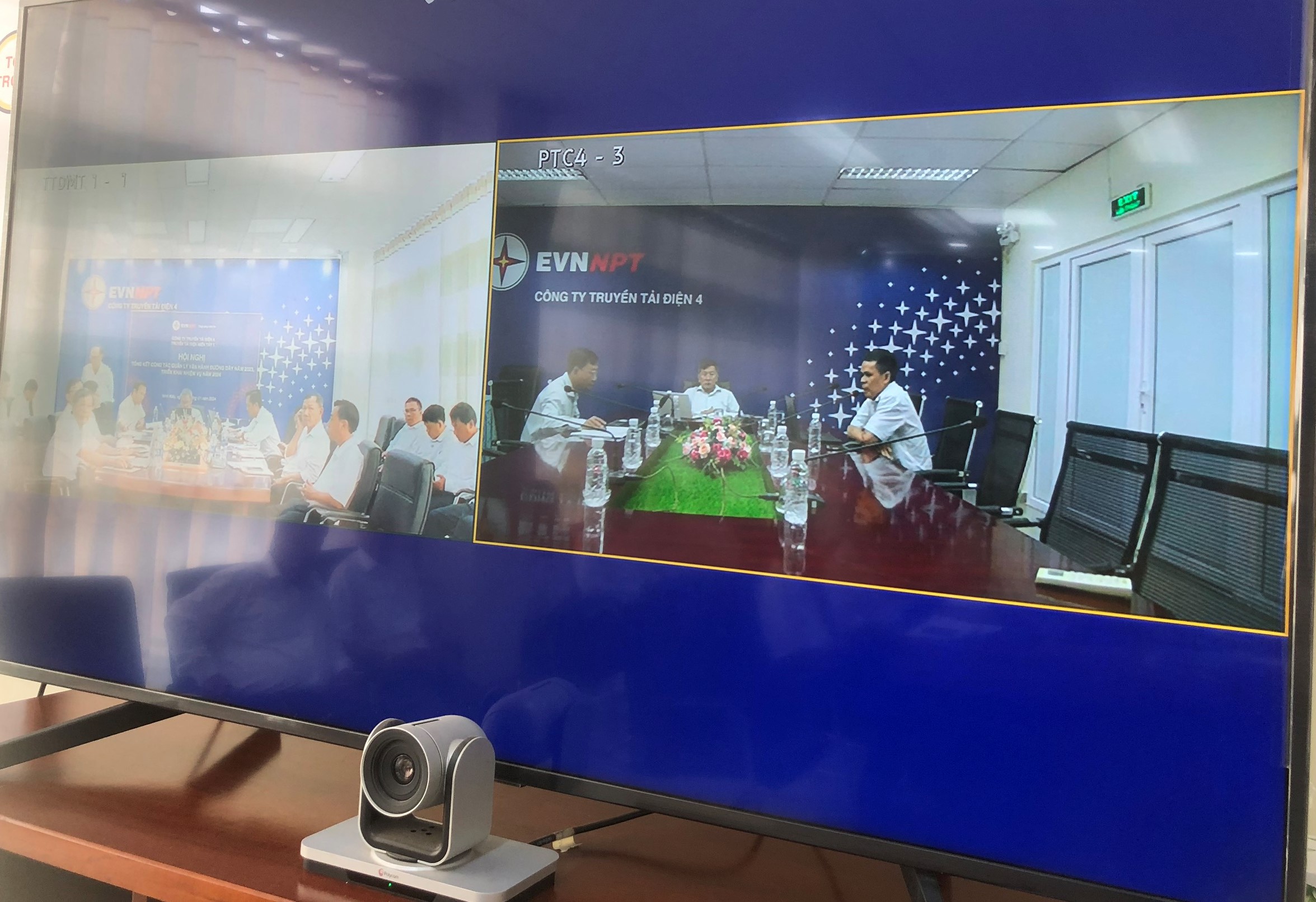 Ông Nguyễn Văn Bảy – Phó Giám Đốc Công ty Truyền tải điện 4 (Ngồi giữa màn hình phải)– Phát biểu chỉ đạo tại Hội nghị