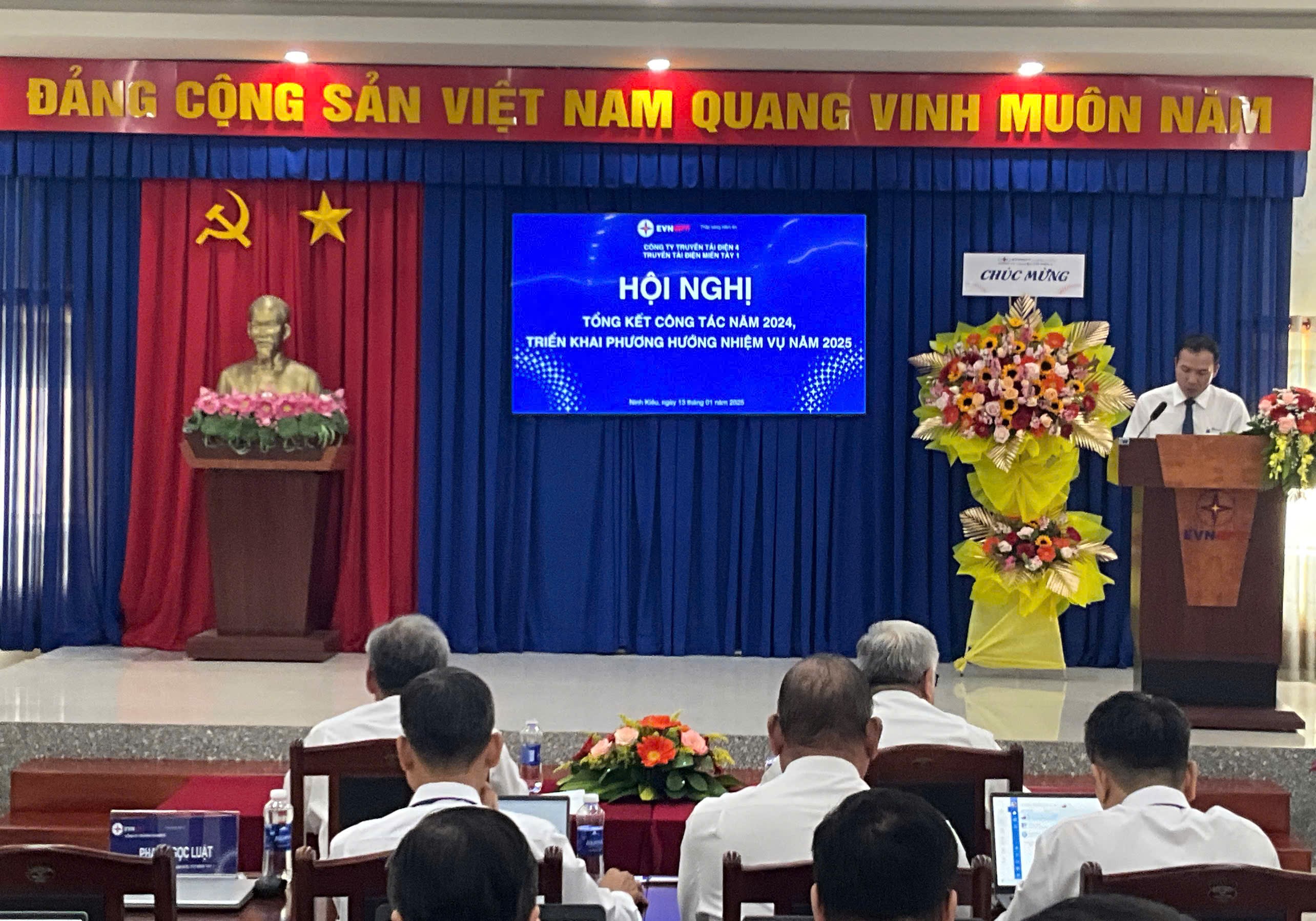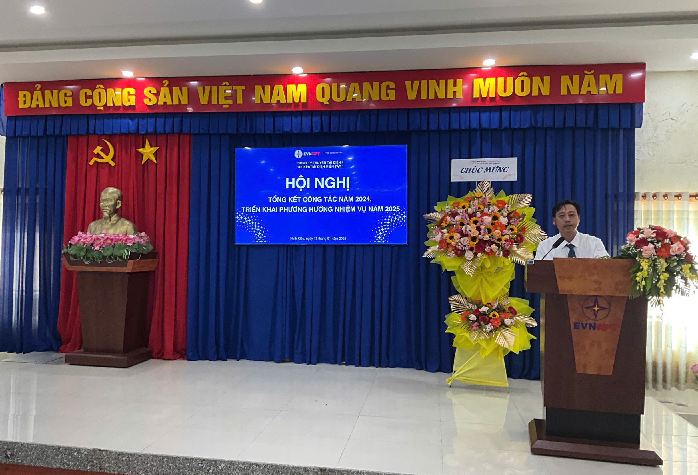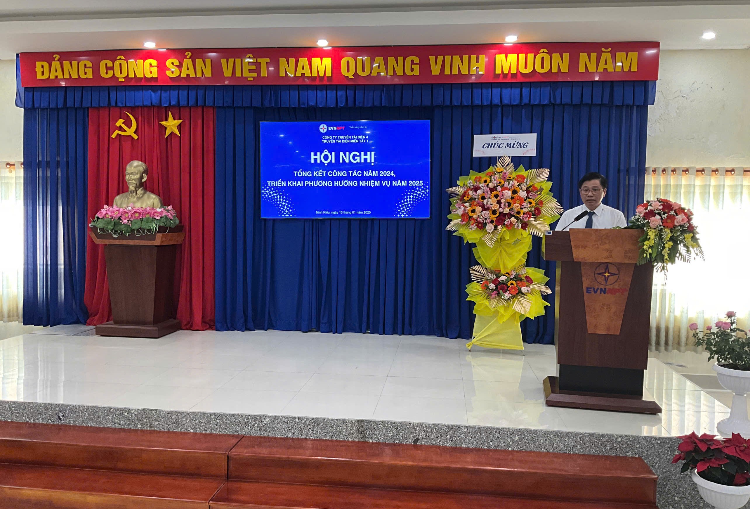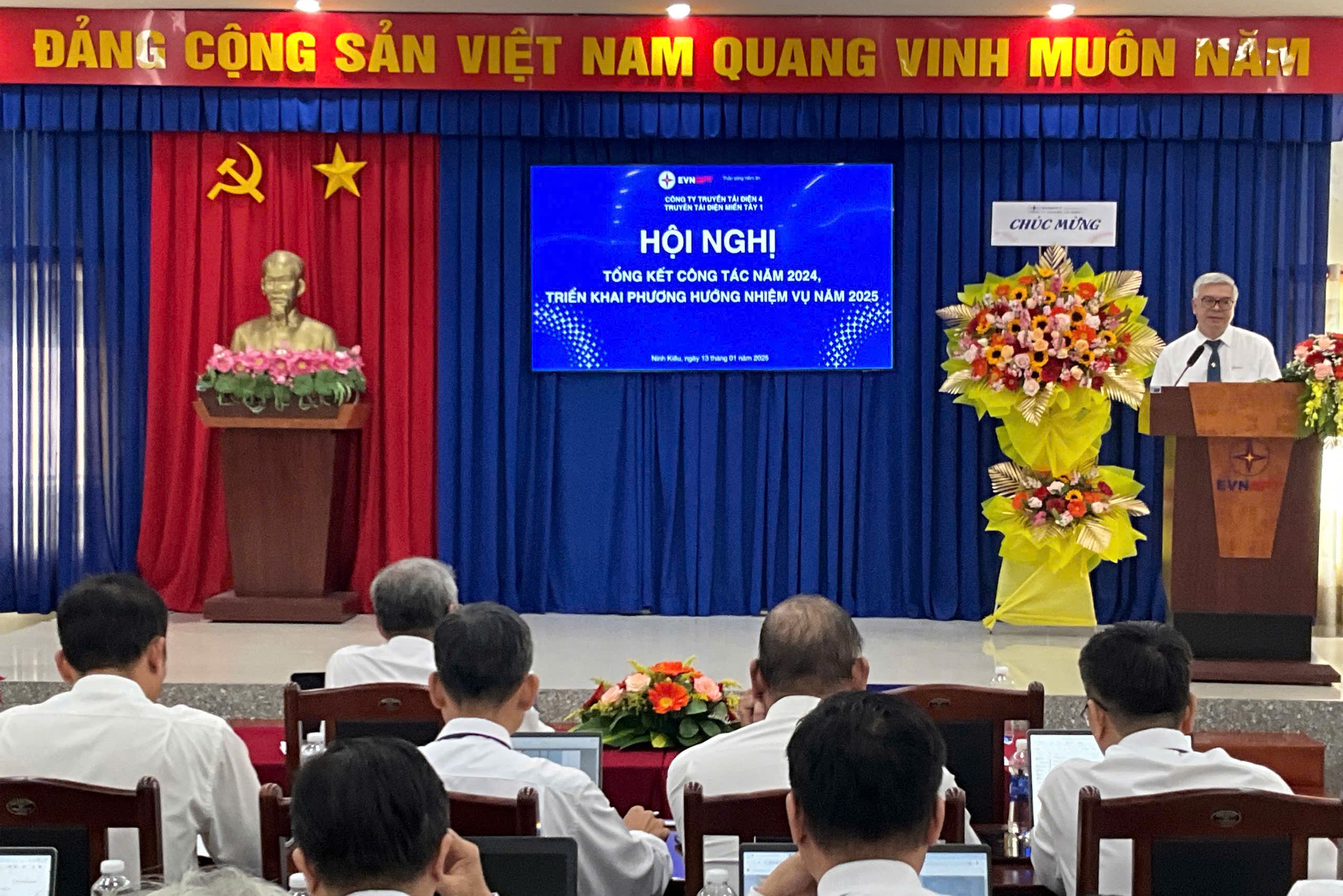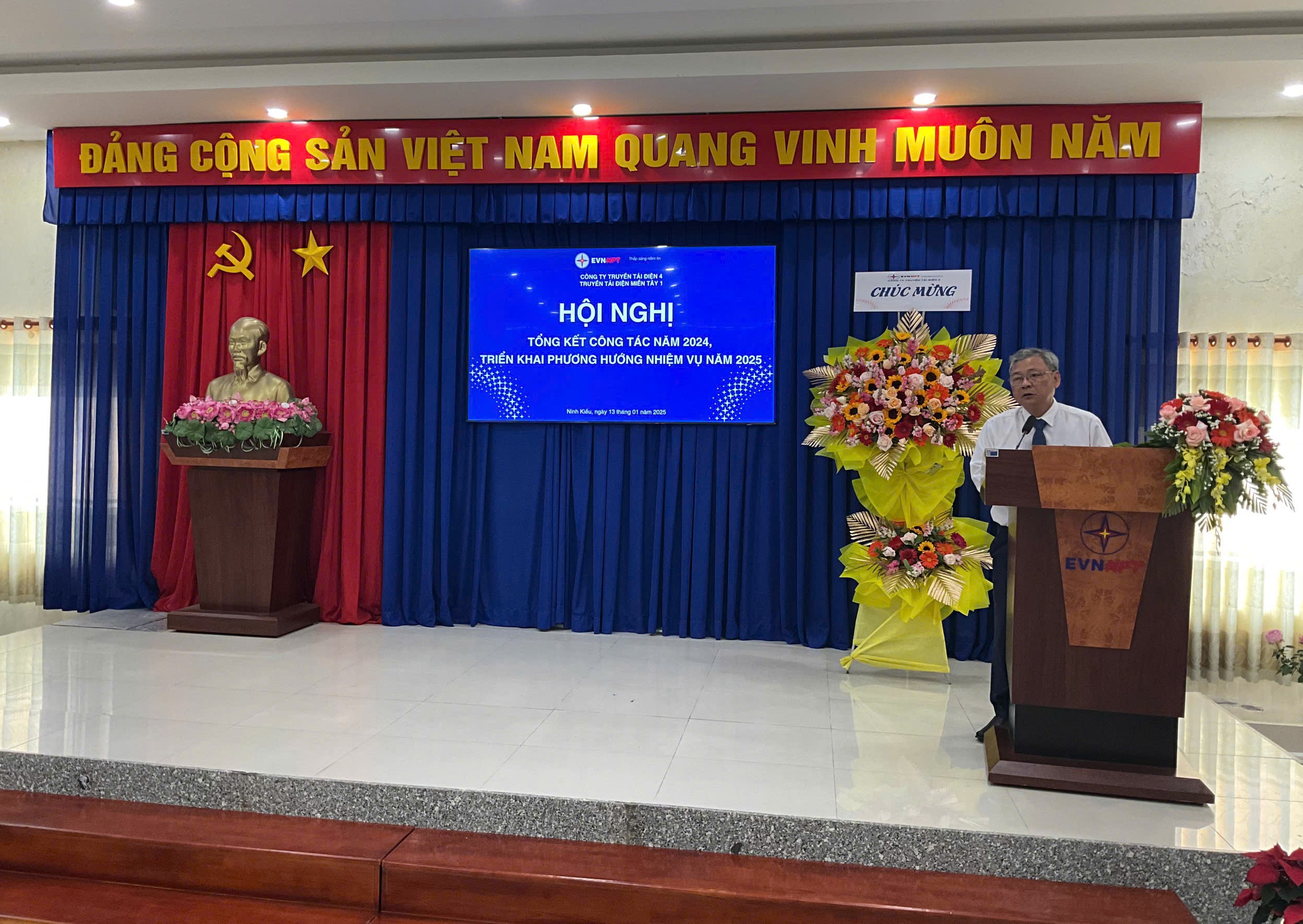 Phát biểu chỉ đạo tại Hội nghị, Ông Nguyễn Văn Hóa – Phó Bí thư Đảng ủy, Phó Giám đốc Công ty Truyền tải điện 4 đã đánh giá cao những nỗ lực của Truyền tải điện miền Tây 1 trong công tác quản lý vận hành lưới điện, góp phần vào sự phát triển chung của Công ty trong năm 2024. Bên cạnh đó, Ông chỉ đạo một số công tác trọng tâm trong năm 2025, về công tác lãnh đạo, chỉ đạo của Đảng, nắm bắt tâm tư, tình cảm của người lao động, giải thích cặn kẽ các vấn đề để người lao động thấu hiểu, từ đó tạo sự đồng thuận cao trong toàn thể Cán bộ công nhân viên của Đơn vị; Chỉ đạo về công tác quản lý vận hành lưới điện truyền tải, tuyệt đối tuân thủ các quy trình, quy phạm trong mọi công tác, phân công cụ thể, rõ ràng, thường xuyên kiểm tra đánh giá kết quả công tác, kết quả thực hiện kế hoạch chuyên đề, theo dõi tình trạng vận hành các thiết bị, tập trung thực hiện các biện pháp ngăn ngừa sự cố, không để xảy ra sự cố do chủ quan. … Ông tin tưởng và hy vọng rằng Đảng bộ Bộ phận Truyền tải điện miền Tây 1 sẽ lãnh đạo đơn vị phát triển tốt hơn, tiếp tục hoàn thành tốt nhiệm vụ được giao trong năm 2025 và những năm tiếp theo.