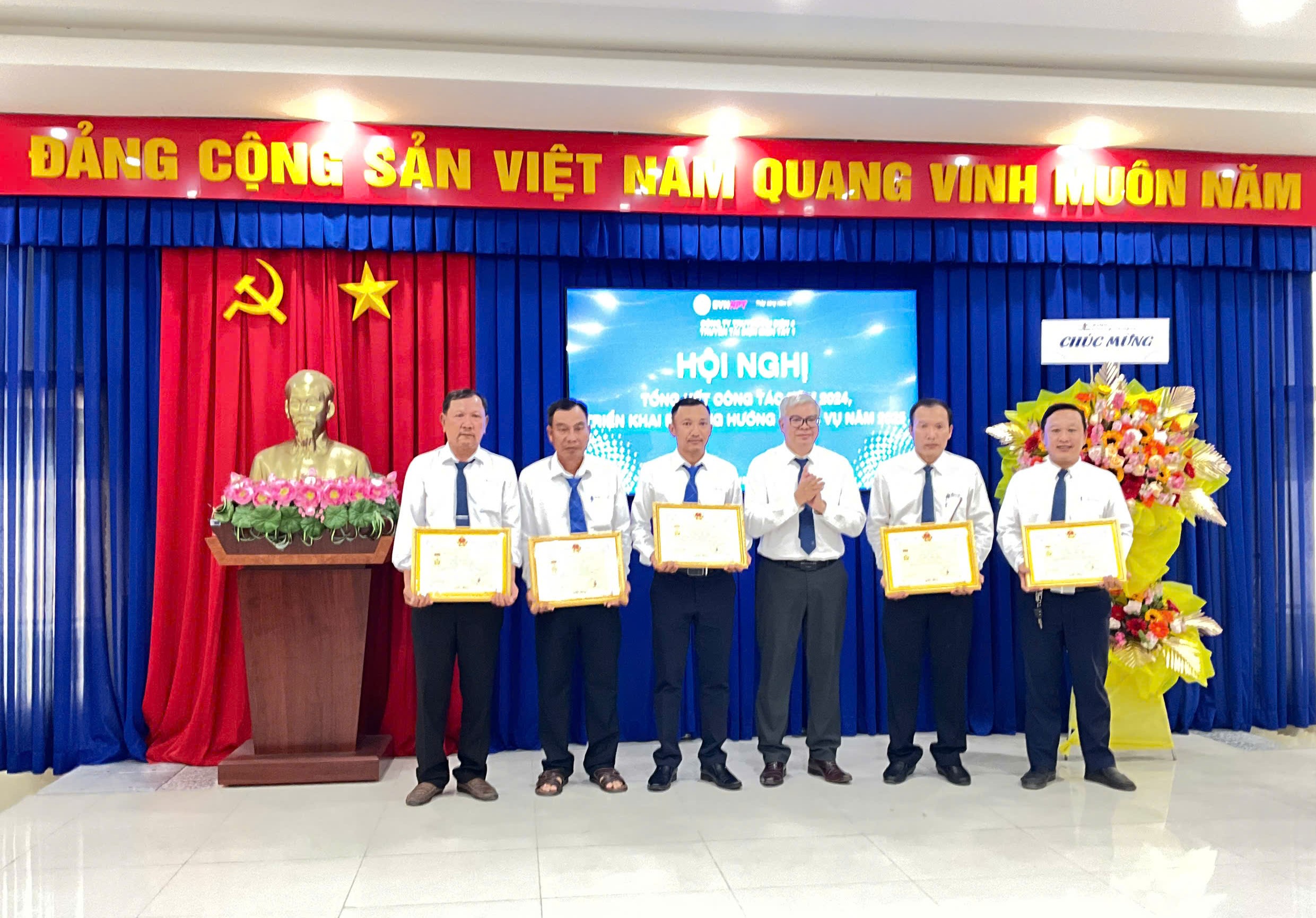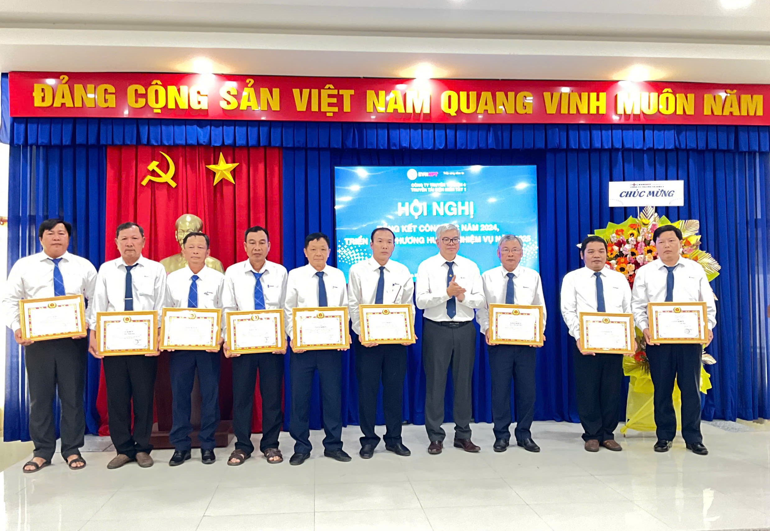 Tại Hội nghị, các tập thể và cá nhân đạt thành tích xuất sắc trong công tác đảng và chuyên môn năm 2024, đã được trao tặng các danh hiệu của Tập đoàn Điện lực Việt Nam, Tổng công ty Truyền tải điện Quốc gia và Công ty Truyền tải điện 4.