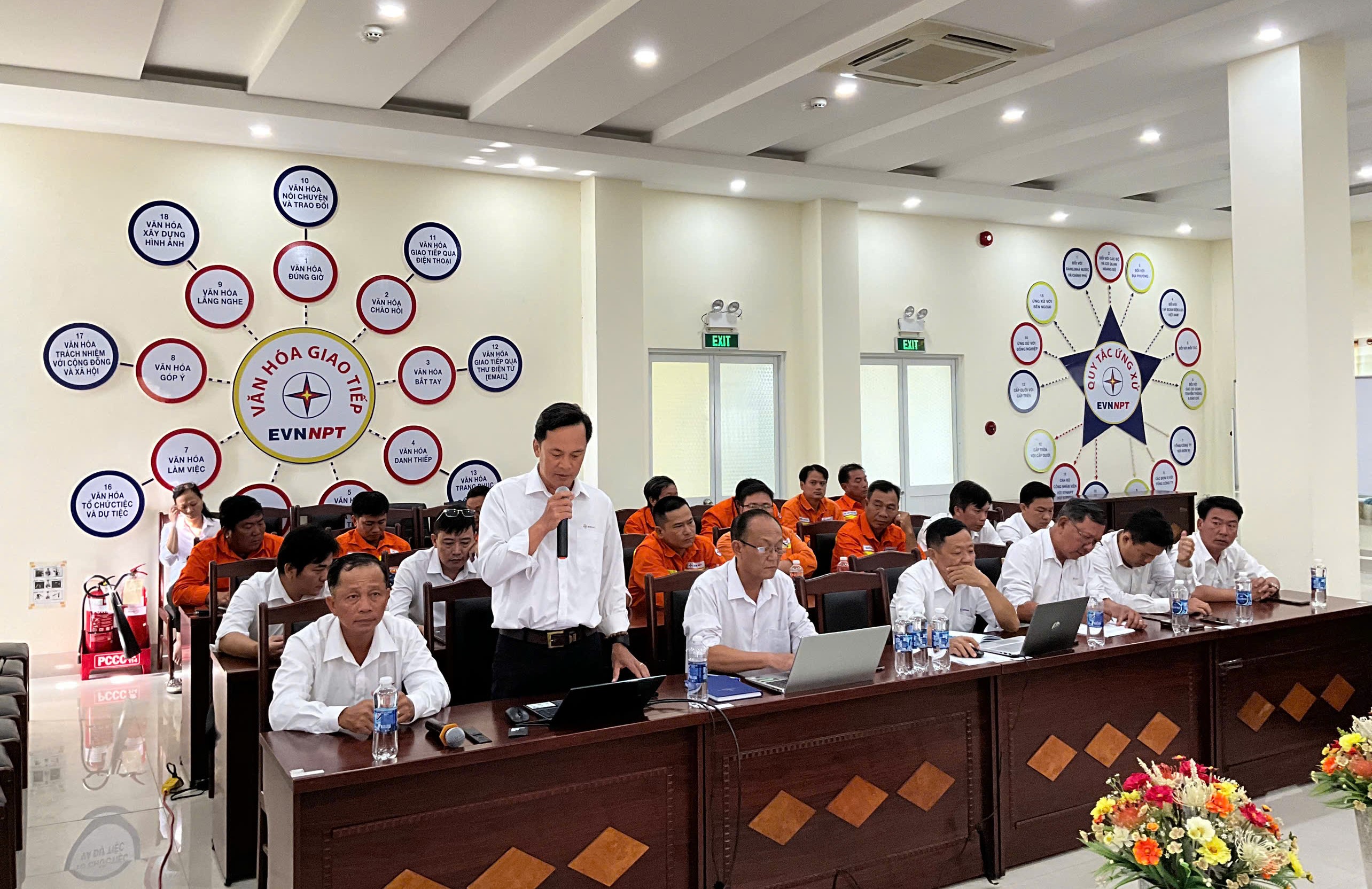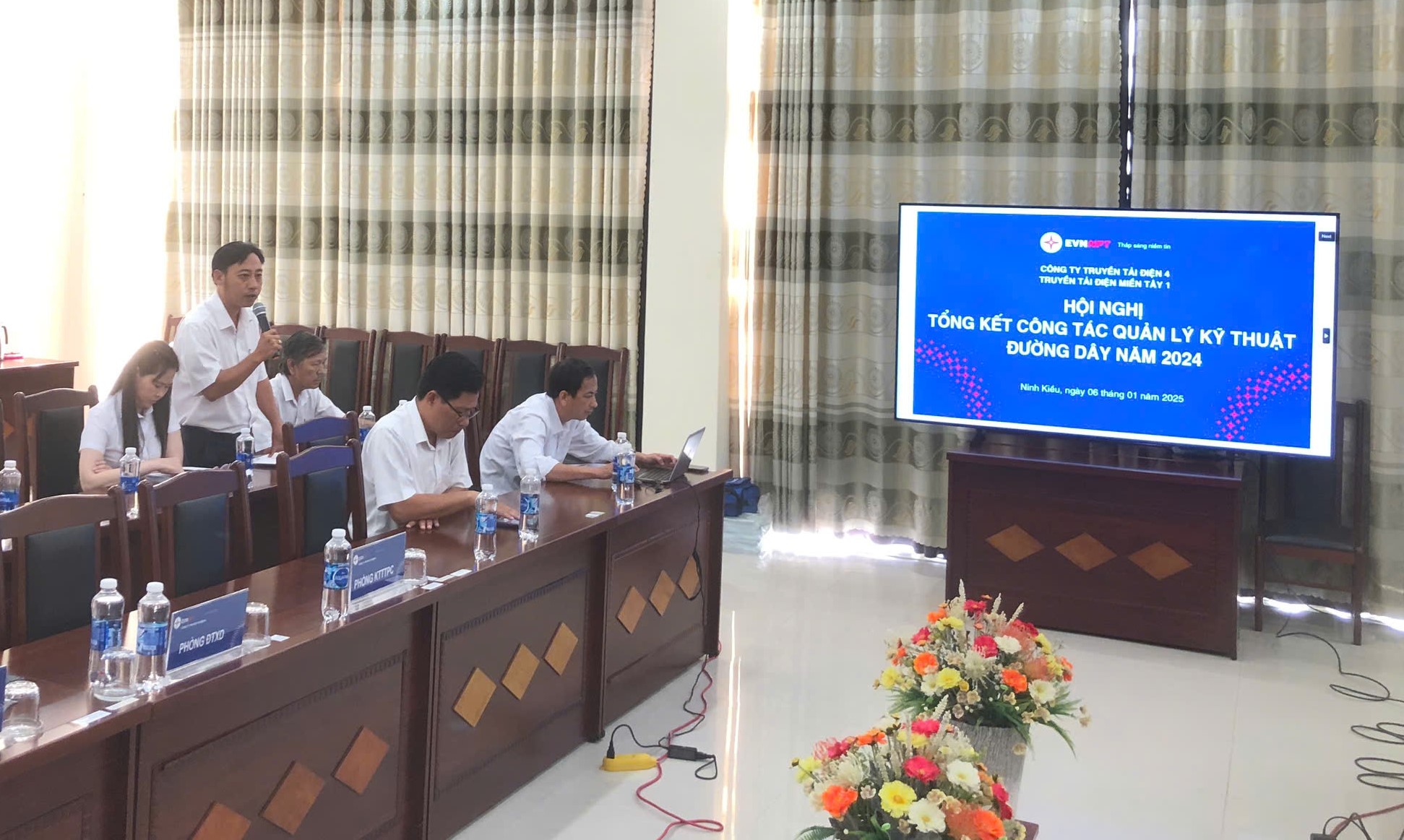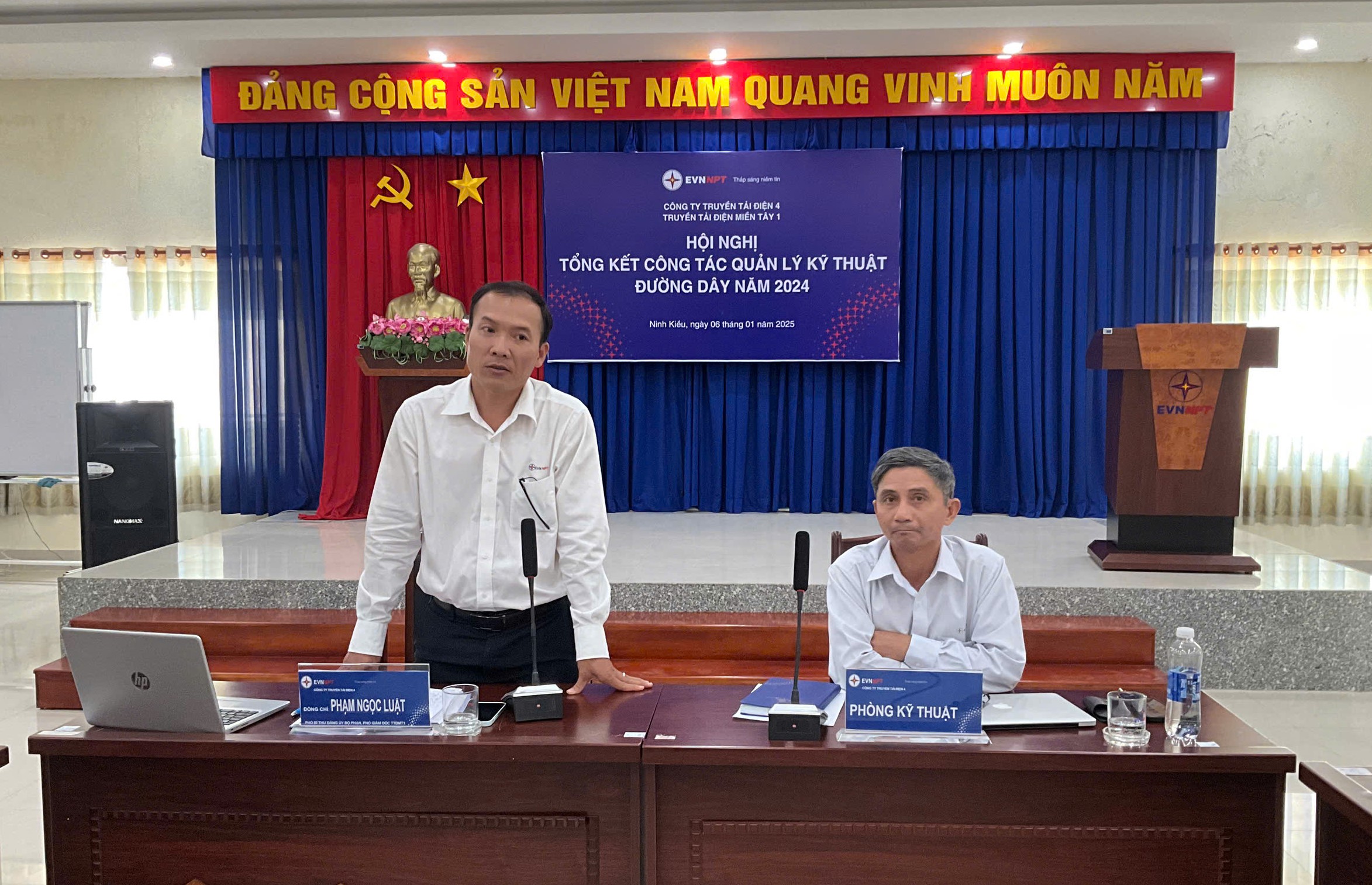 Ông Lê Giang Sơn – Phó trưởng Phòng Kỹ Thuật TTĐMT1 – Trình bày Báo cáo công tác quản lý kỹ thuật đường dây năm 2024 và triển khai nhiệm vụ năm 2025.