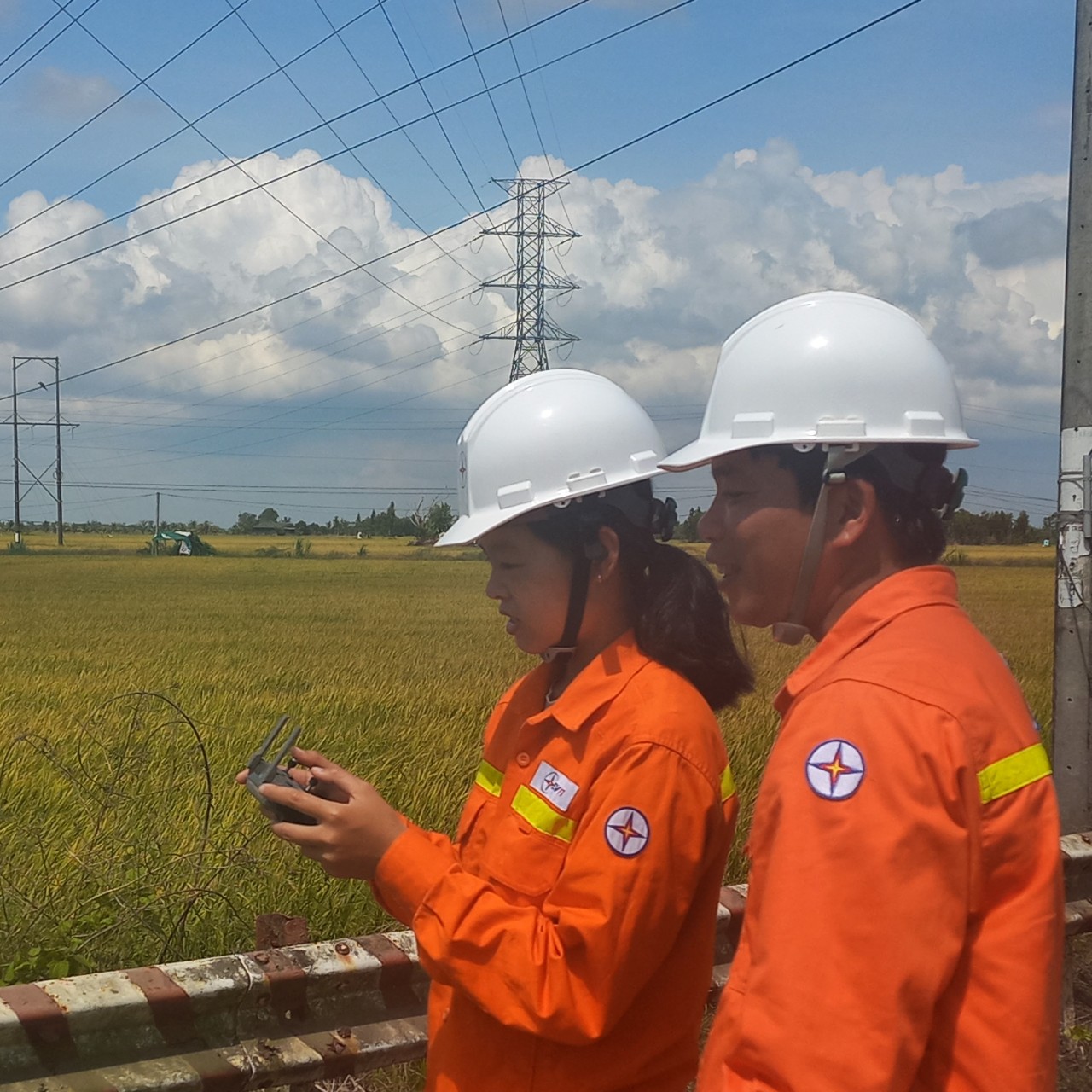 Công nhân Đội Truyền tải điện Bạc Liêu sử dụng UAV kiểm tra tuyên đường dây.