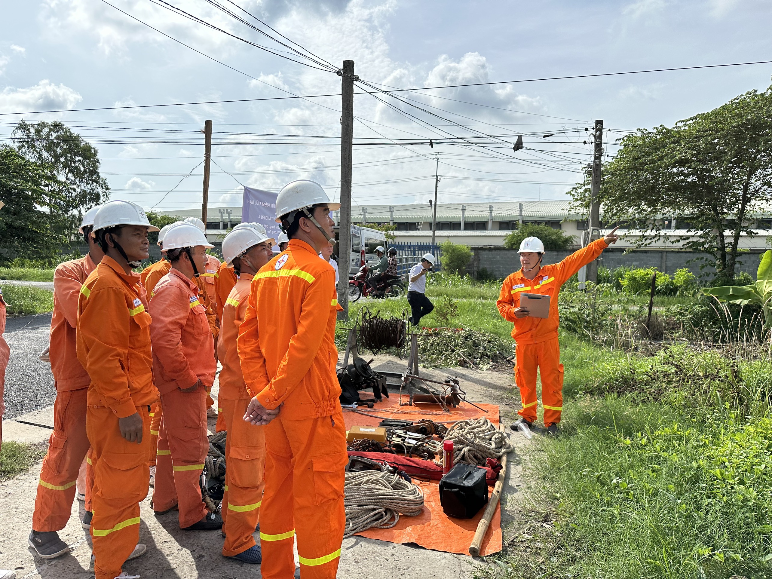 Nội dung diễn tập là tình huống xử lý dây chống sét bị bung, đứt tao nhôm khoảng cột 96 – 97 đường dây 220kV Long An – Cai Lậy 1, do mưa bão gây thiệt hại đến lưới điện tại khu vực xã Tân Hương, huyện Châu Thành, tỉnh Tiền Giang.