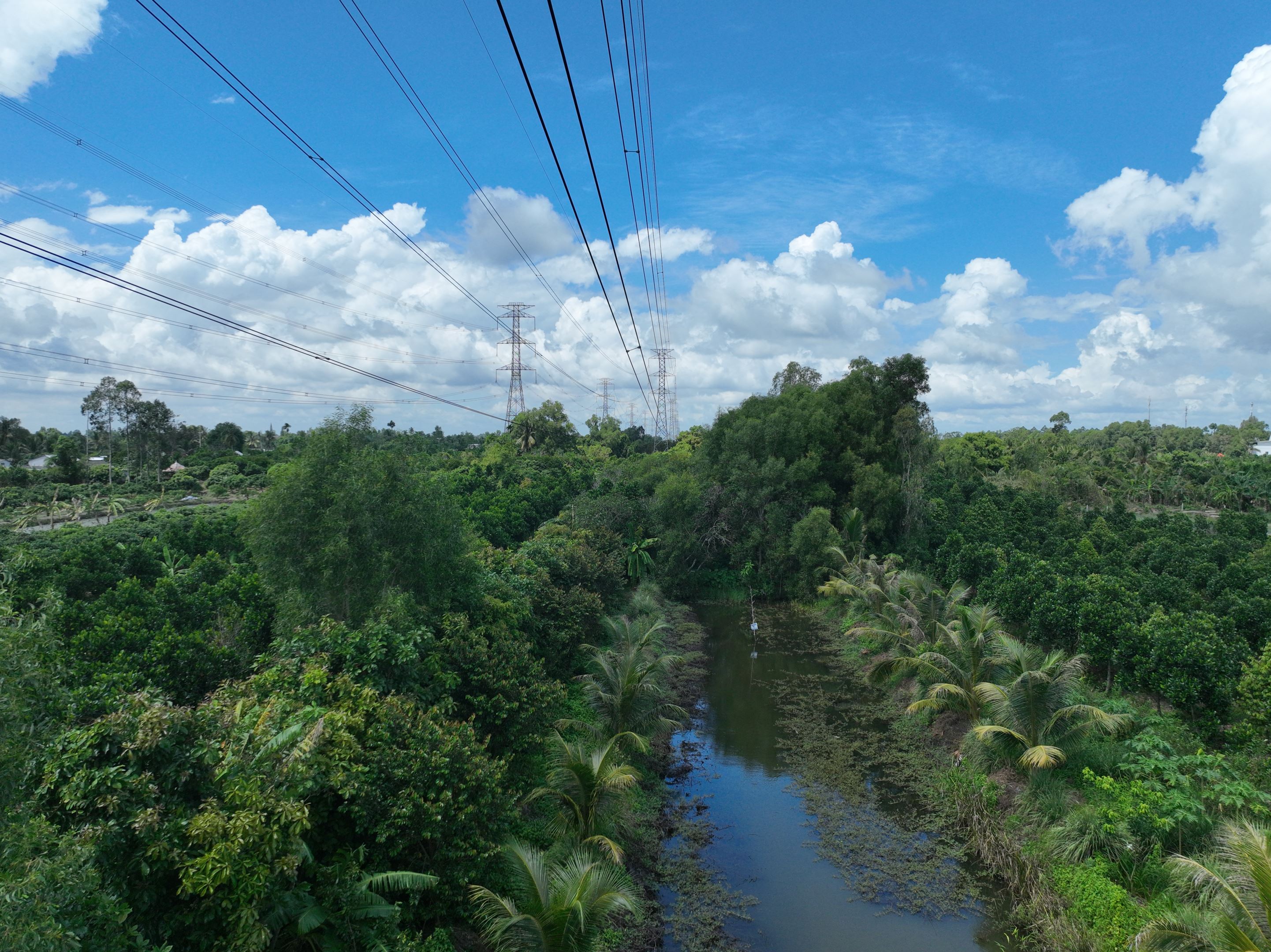 Hình ảnh cây vi phạm khoảng cách an toàn tại khoảng cột 49 – 50 đường dây 220kV Vĩnh Long – Ô Môn