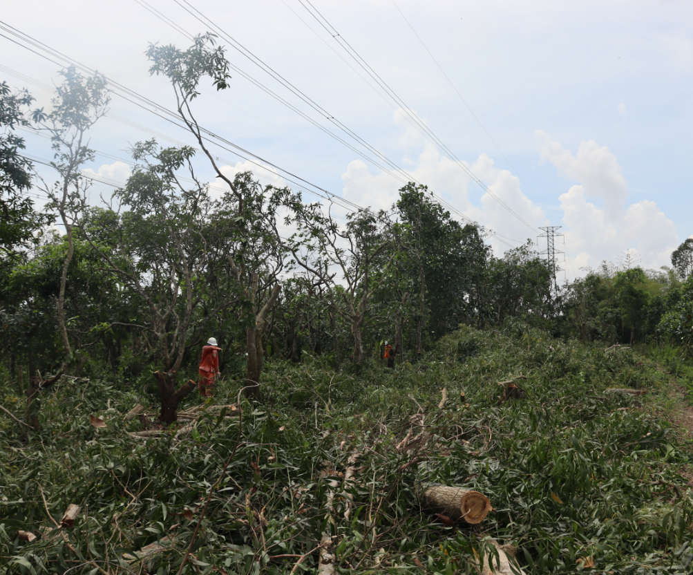 Hình ảnh cây vi phạm hành lang đã được chặt hạ đảm bảo đường dây vận hành an toàn