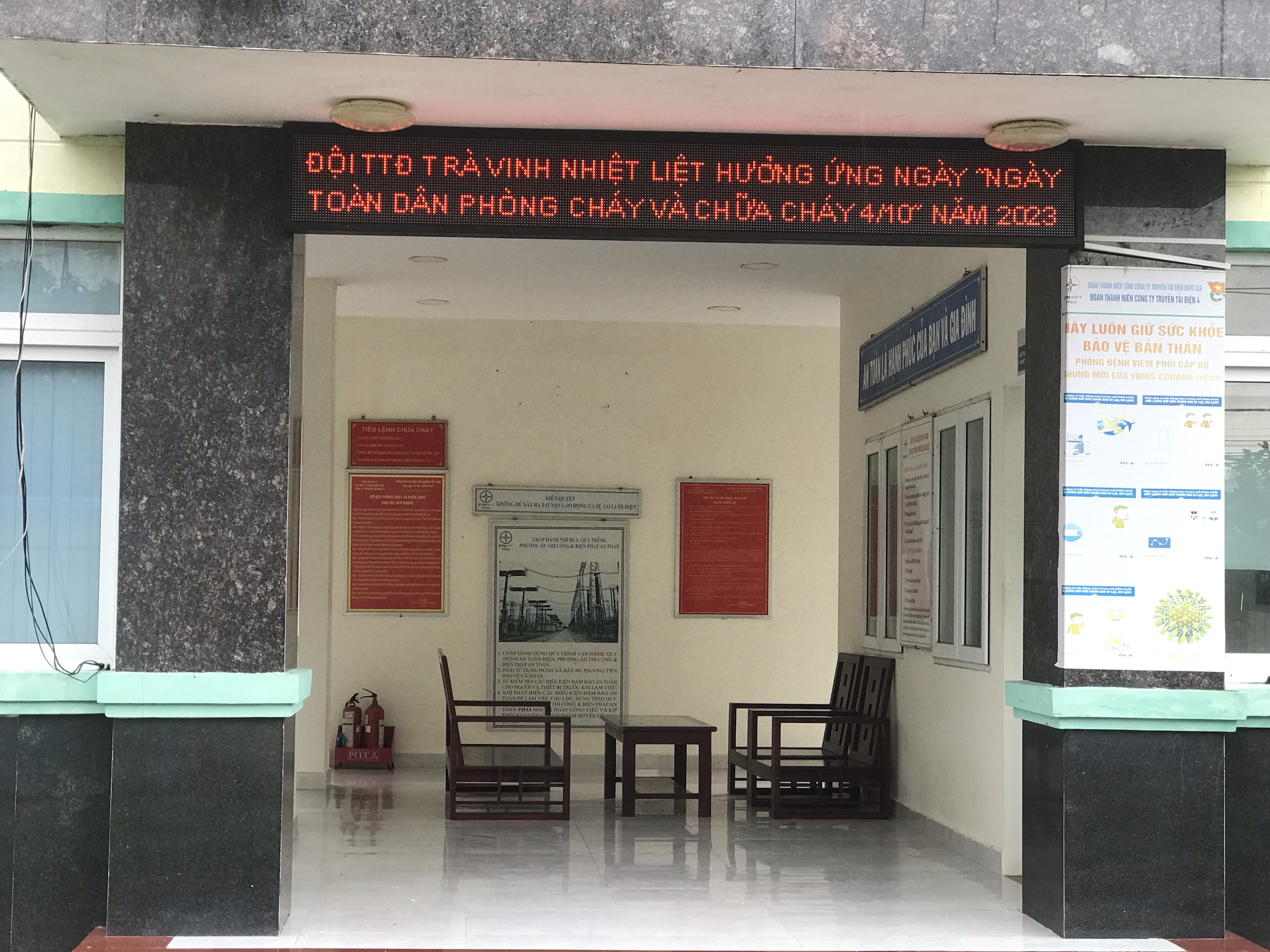 Đồng thời, triển khai thực hiện nhiều hoạt động như: Củng cố hồ sơ quản lý công tác PCCC&CNCH tại tất cả các đơn vị trực thuộc; Tổ chức kiểm tra định kỳ các phương tiện phục vụ công tác PCCC để đảm bảo hoạt động khi có cháy nổ xảy ra; Thường xuyên rà soát tại các phương tiện không đảm bảo, bị hư hỏng để tổ chức mua sắm, trang bị lại; Phối hợp với địa phương tuyên truyền an toàn PCCC; Tổ chức phát tờ rơi, lắp biển cảnh báo phòng cháy, tổ chức các đợt tuyên truyền an toàn điện và phòng cháy trong hoặc ngoài hành lang các đường dây 220kV, 500kV; Phối hợp với Phòng Cảnh sát PCCC&CNCH của Công an 05 tỉnh Tiền Giang, Vĩnh Long, Bến Tre, Đồng Tháp và Trà Vinh tổ chức lớp tập huấn tuyên truyền phổ biến kiến thức pháp luật PCCC, diễn tập phương án PCCC&CNCH định kỳ mỗi năm/lần. Với việc đưa ra phương án chữa cháy, cứu nạn theo các tình huống cụ thể, nhằm giúp cho đội viên đội PCCC thuần thục cách sử dụng các thiết bị chữa cháy và chủ động hơn trong công tác phòng ngừa cũng như nâng cao ý thức trách nhiệm trong công tác PCCC, từ đó hạn chế đến mức thấp nhất sự cố do cháy, nổ xảy ra. Qua đó, phát huy tối đa hiệu quả phương châm 4 tại chỗ (chỉ huy tại chỗ, lực lượng tại chỗ, phương tiện vật tư tại chỗ và hậu cần tại chỗ).
