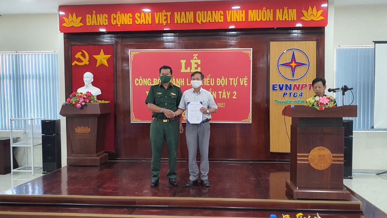 Tiểu đội tự vệ Truyền tải điện miền Tây 2 được thành lập tại Quyết định số 414/QĐ-BCH của Ban Chỉ huy quân sự thành phố Vĩnh Long ngày 29/04/2021 về việc thành lập Tiểu đội tự vệ cơ quan, gồm 9 chiến sĩ, do đồng chí Trần Trung Hiếu, nhân viên Phòng Tổng hợp làm Tiểu đội Trưởng.