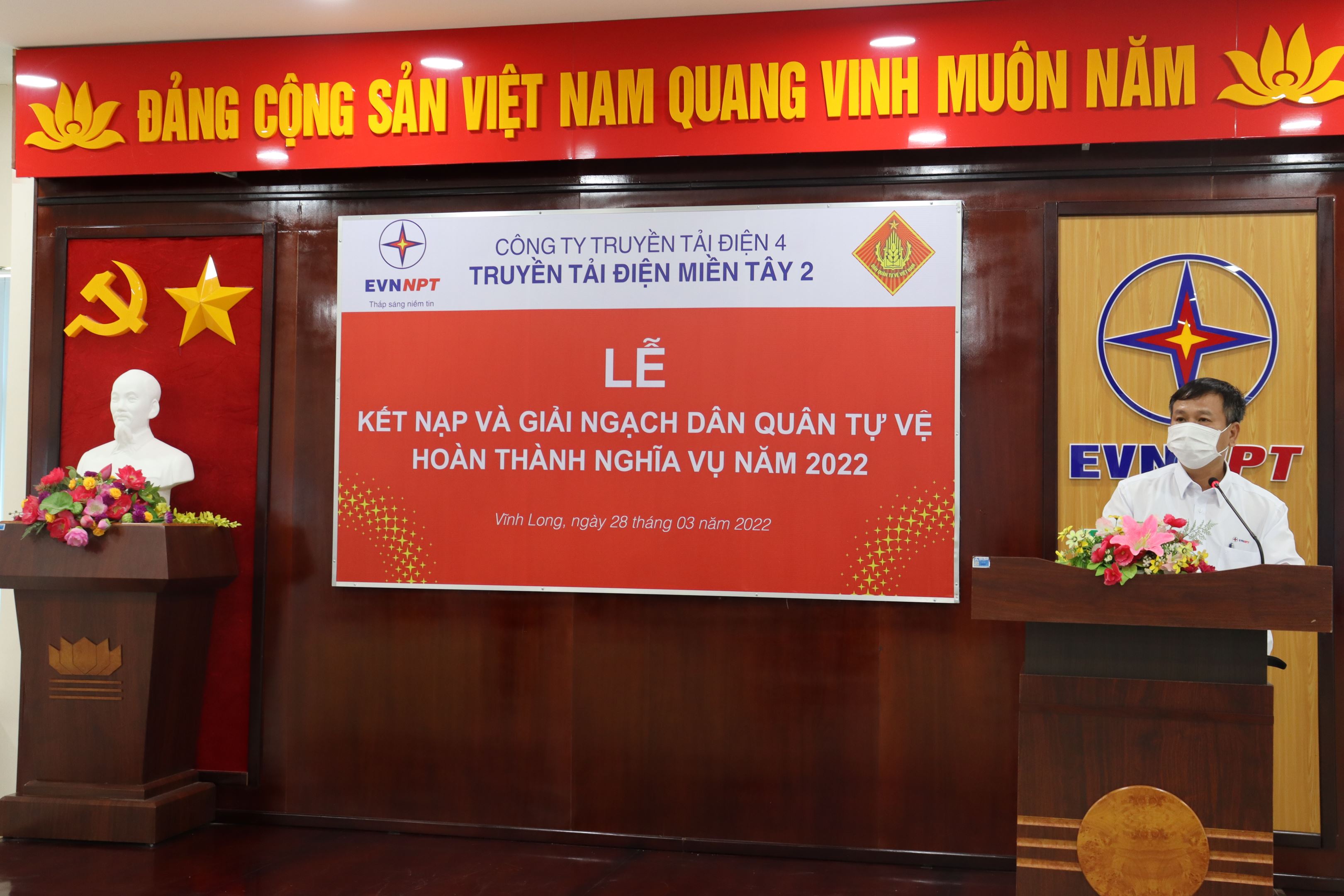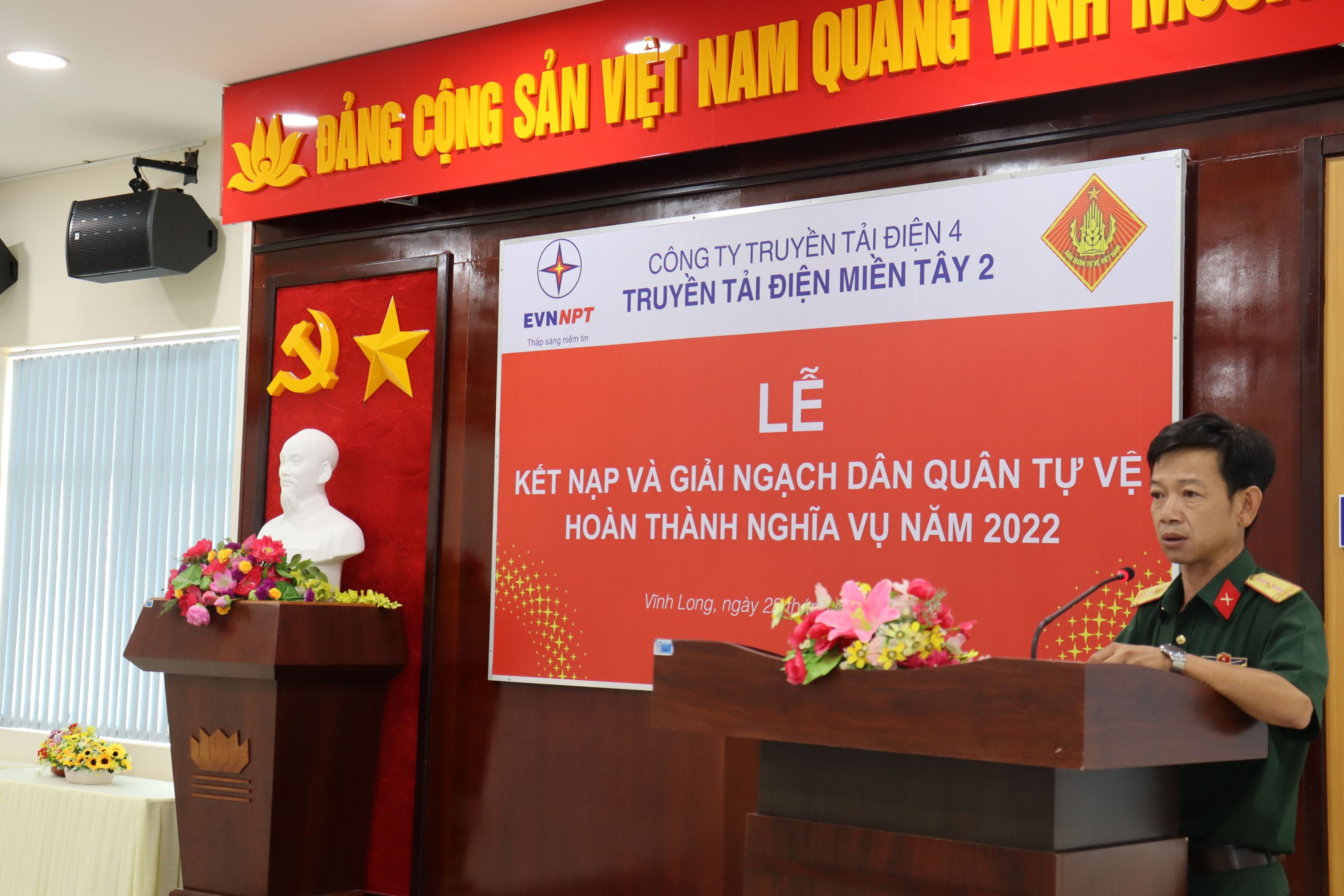 Thực hiện theo hướng dẫn số 177/HD-BCH ngày 24 tháng 02 năm 2022 của Ban chỉ huy Quân sự thành phố Vĩnh Long về việc hướng dẫn tổ chức kết nạp và giải ngạch Dân quân tự vệ hoàn thành nghĩa vụ năm 2022 và để củng cố, xây dựng lực lượng Tiểu đội tự vệ cơ quan Truyền tải điện miền Tây 2 (TTĐMT2) ngày càng vững mạnh và phát huy tinh thần trách nhiệm trong việc xây dựng quốc phòng toàn dân ở địa phương và xây dựng lực lượng dân quân tự vệ sẵn sàng trong mọi tình huống xảy ra.