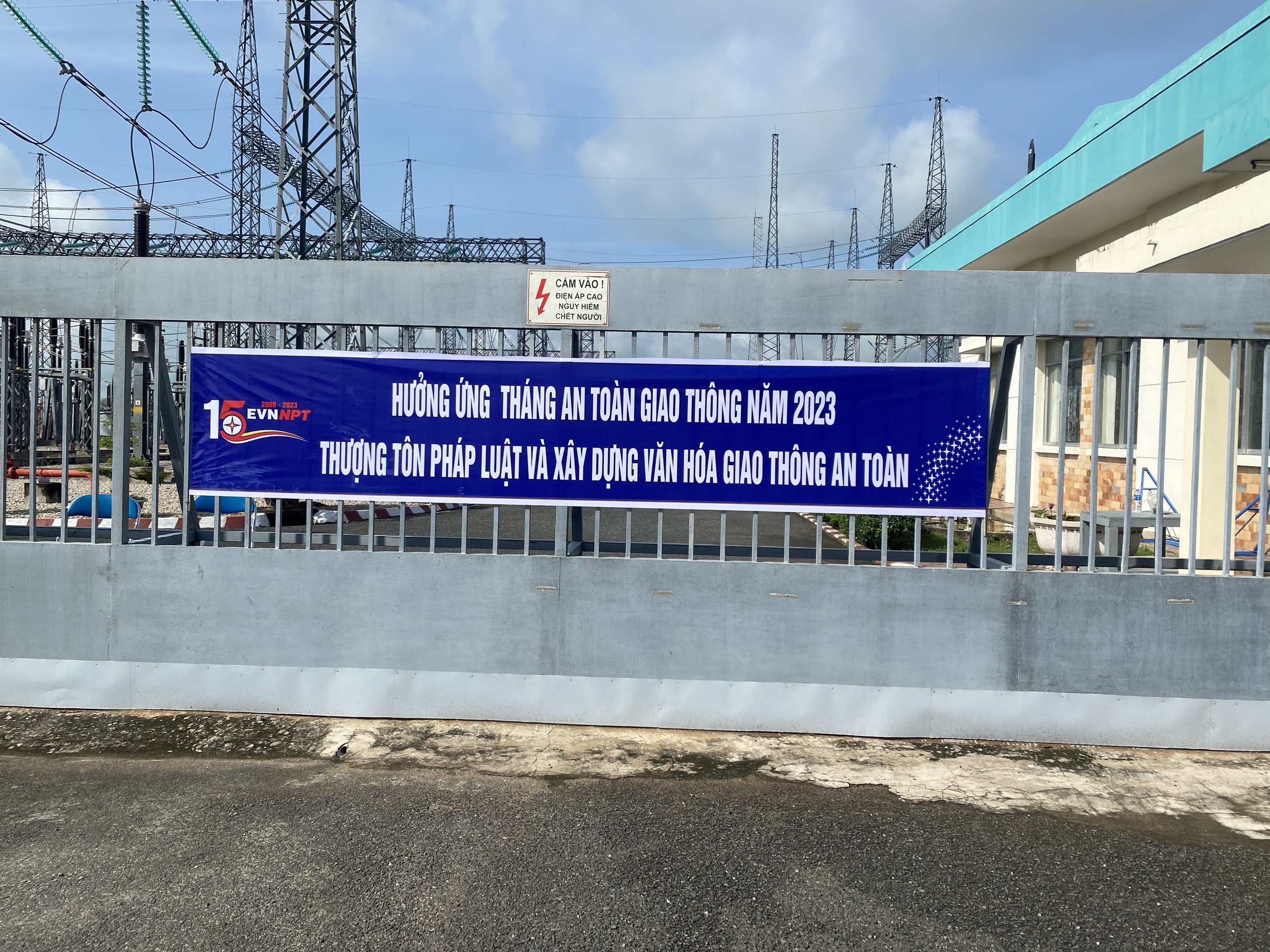 Trạm 220kV Châu Đốc treo băng rôn tuyên truyền hưởng ứng Tháng an toàn giao thông năm 2023