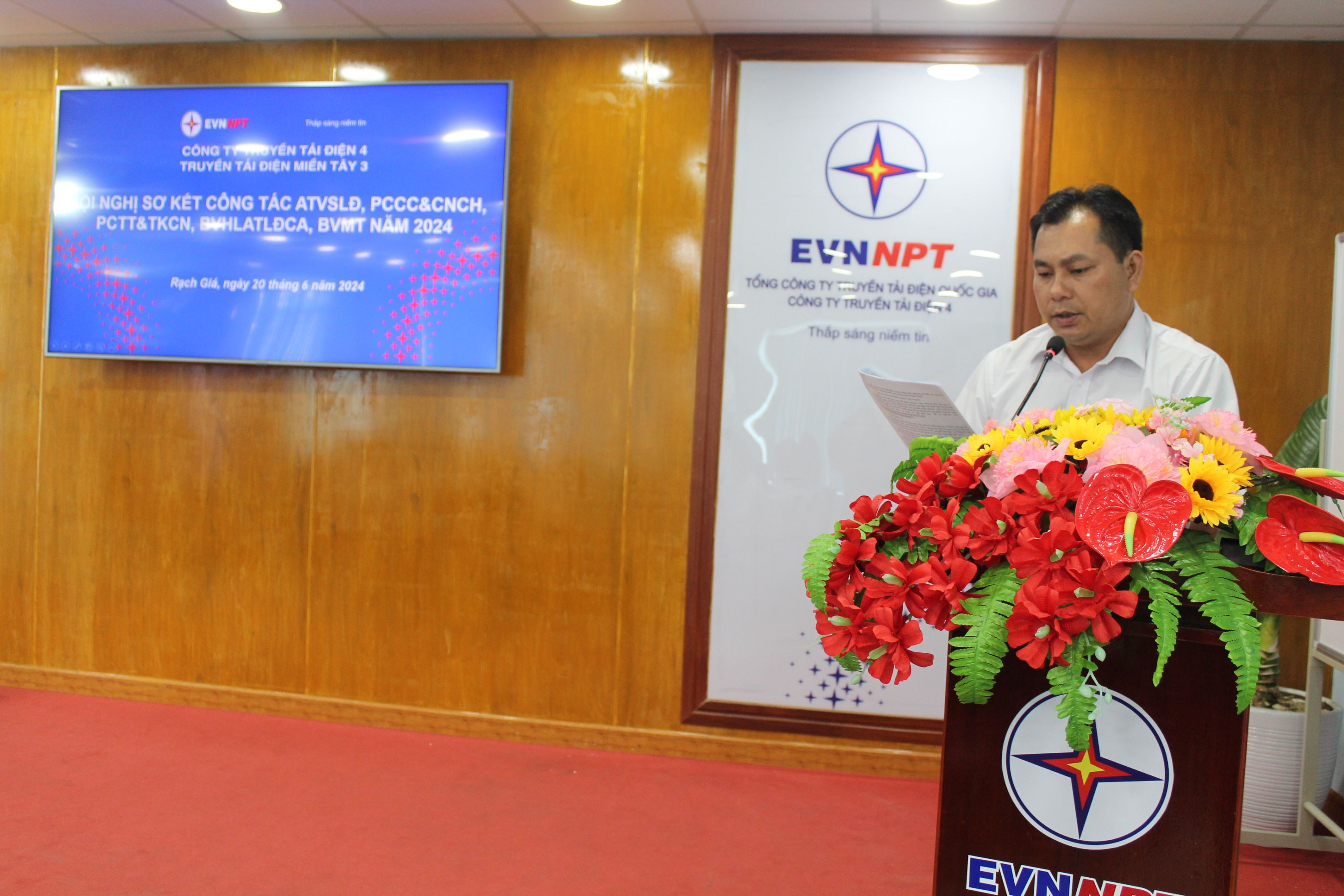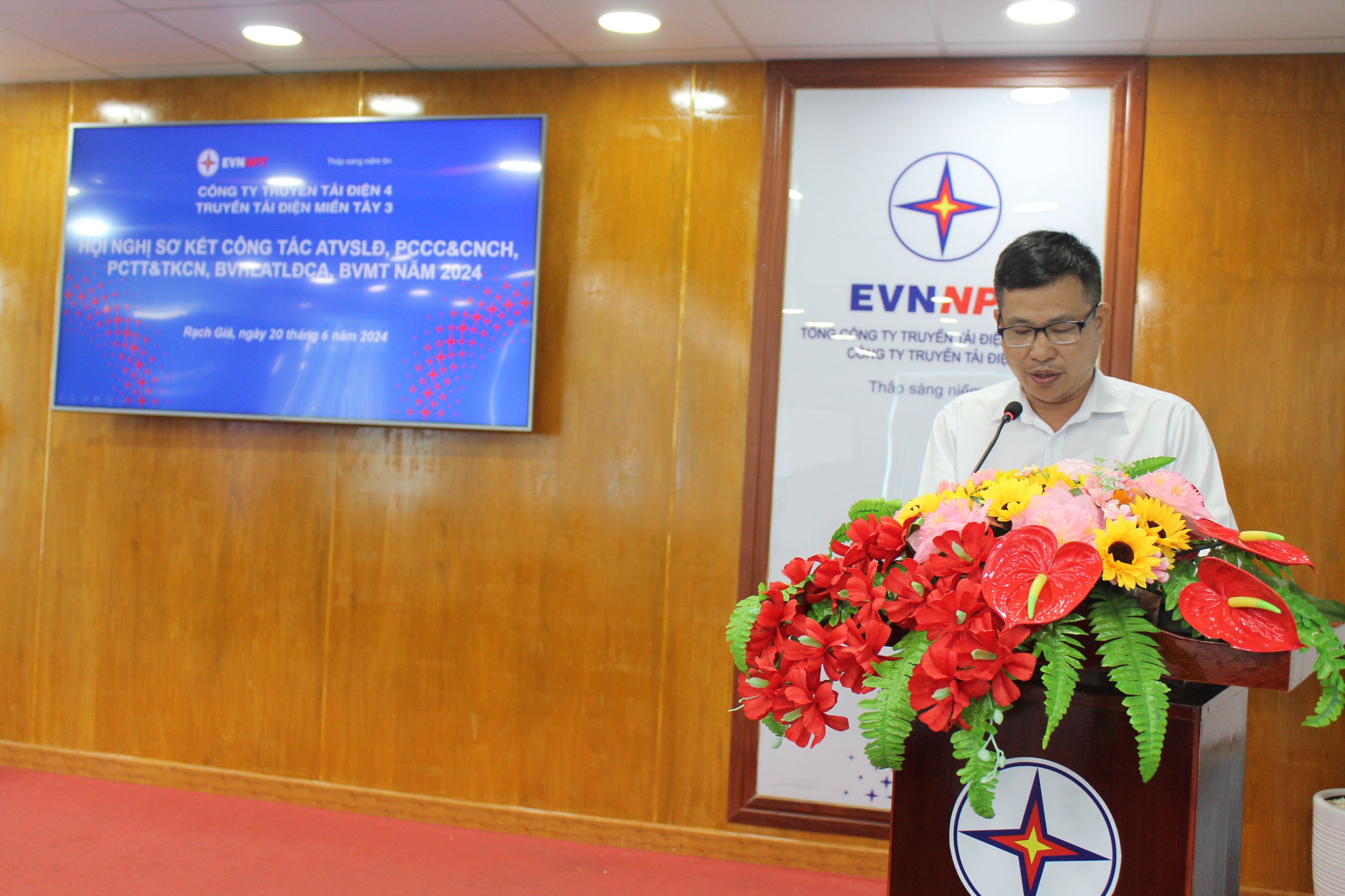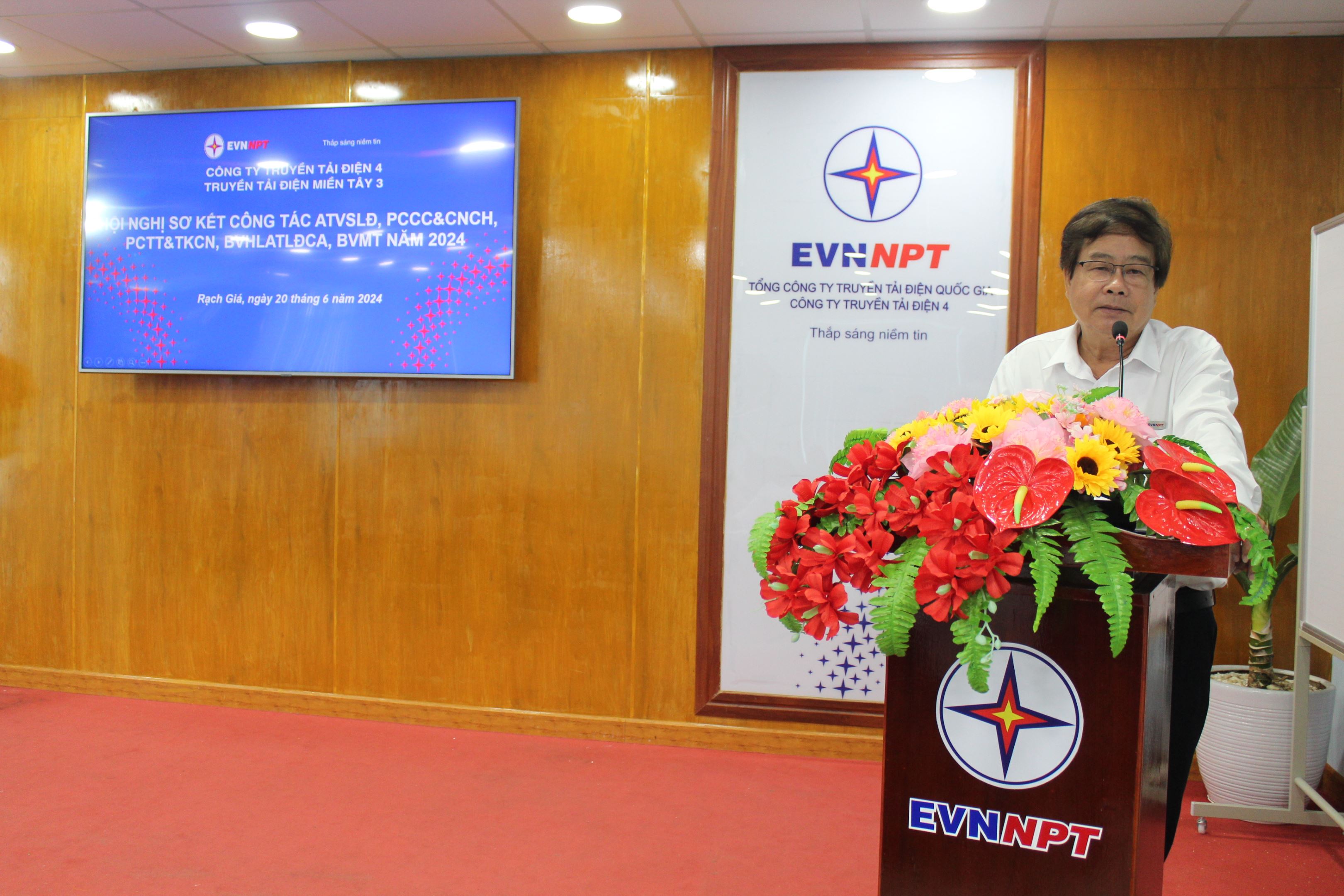 Khai mạc Hội nghị, ông Lê Xuân Thụ đã đưa ra một số nội dung chính để các đại biểu thảo luận, các nội dung xoay quanh công tác an toàn lao động, Kết quả thực hiện kế hoạch ATVSLĐ 06 tháng vừa qua và phân công các phòng báo cáo. Tại hội nghị, phòng Kỹ thuật đã báo cáo chi tiết kết quả đã thực hiện được, các thiếu sót tồn tại cần khắc phục và các bài học kinh nghiệm trong công tác an toàn; Trong đó kết quả đáng ghi nhận trong 06 tháng đầu năm 2024 Truyền tải điện miền Tây 3 không xảy ra tai nạn lao động; tổ chức thực hiện đầy đủ và nghiêm túc công tác ATVSLĐ theo yêu cầu của Công ty Truyền tải điện 4 như thành lập bộ máy thực hiện công tác ATVSLĐ; triển khai, thực hiện theo kế hoạch ATVSLĐ năm 2024; tổ chức công tác huấn luyện, kiểm tra an toàn điện định kỳ, trình phê duyệt kết quả huấn luyện, các chức danh thực hiện phiếu công tác, lệnh công tác, tổ chức huấn luyện ATVSLĐ nhóm 3 an toàn điện, nhóm 3 an toàn thiết bị nâng, nhóm 6 an toàn vệ sinh lao động đúng quy định; phân công, tổ chức kiểm tra hiện trường công tác nhằm phát hiện kịp thời, xử lý và khắc phục các thiếu sót trong công tác; thực hiện tốt công tác thí nghiệm, kiểm định định kỳ, bảo dưỡng, thay thế thiết bị đảm bảo vận hành; tuân thủ việc áp dụng phương án thi công và biện pháp an toàn, các công tác trên lưới có lập, duyệt phương án thi công và biện pháp an toàn và triển khai nghiêm túc đến người lao động trước khi làm việc.
