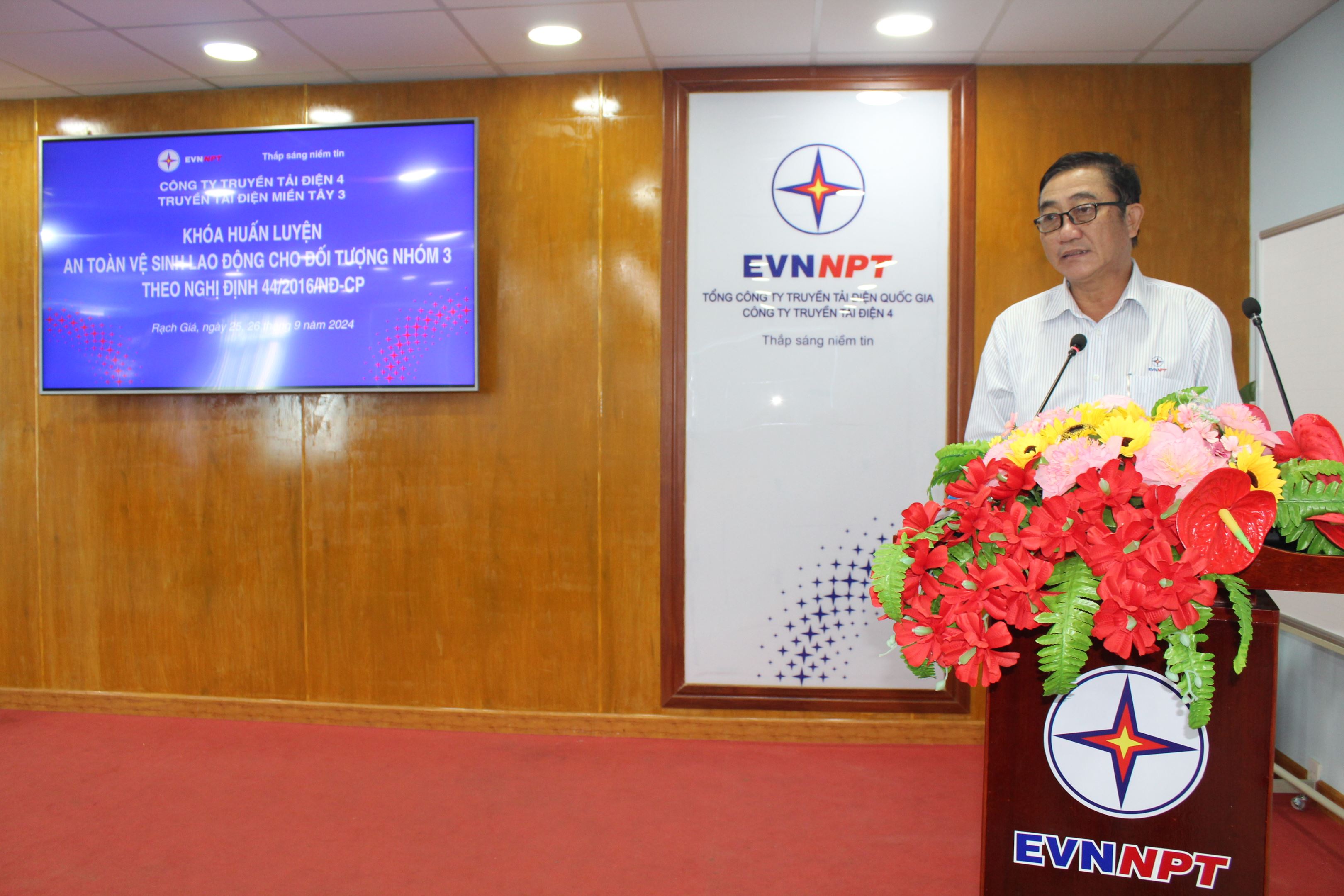 Ông. Châu Sóc Kha – Phó Giám đốc, Chủ tịch công đoàn Truyền tải điện miền Tây 3 thay mặt đơn vị phát biểu khai giảng lớp học.