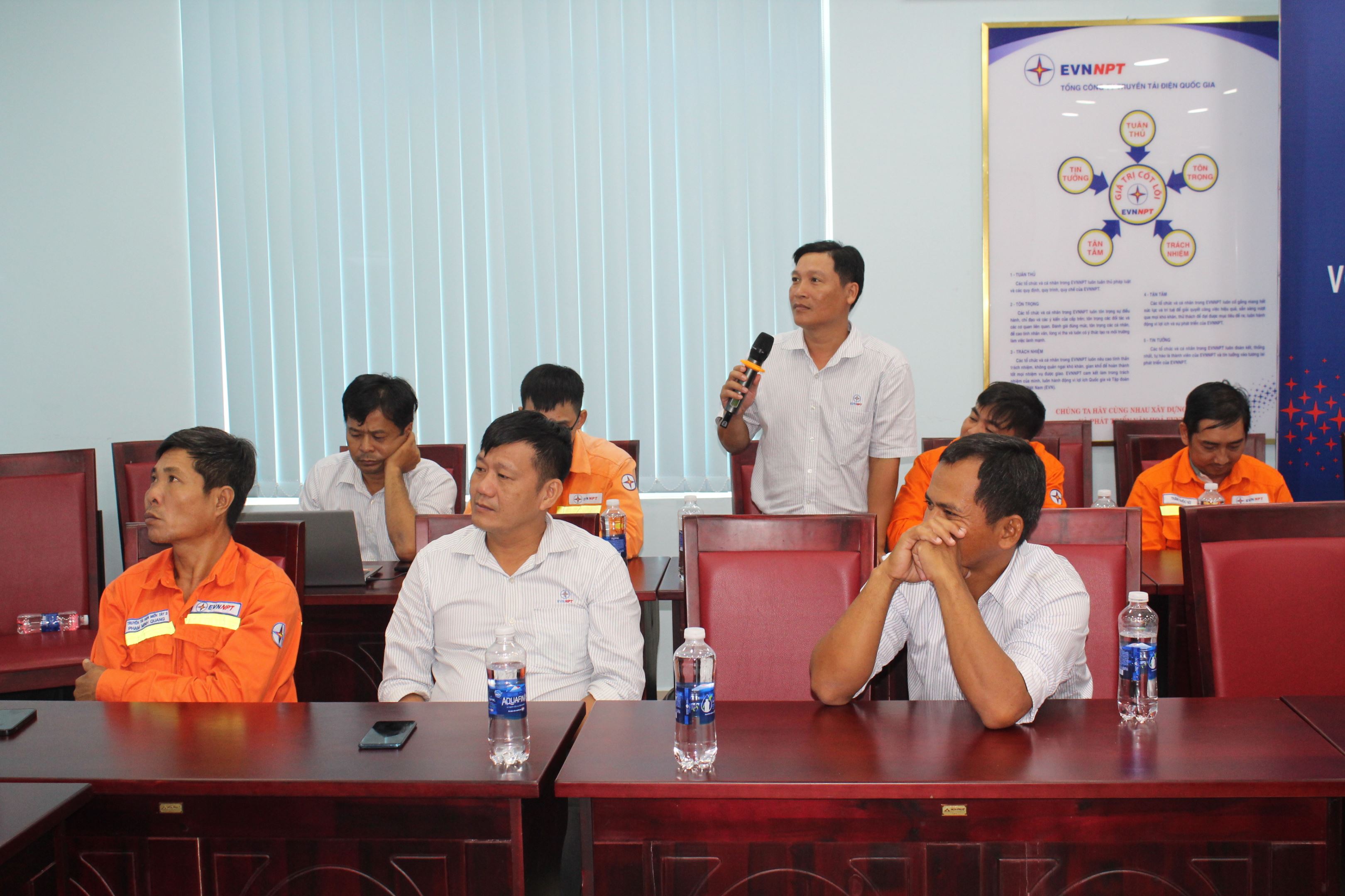 Thành phần tham dự khóa đào tạo gồm toàn thể CBCNV các phòng, tổ, đội, trạm trực thuộc với tổng số lượng 123/123 CBCNV. Hình thức tập huấn trực tiếp tại hội trường Truyền tải điện miền Tây 3 và kết hợp trực tuyến qua Zoom Meeting. ông Lê Xuân Thụ - Giám đốc Truyền tải điện miền Tây 3 đến dự và phát biểu khai mạc khóa đào tạo.