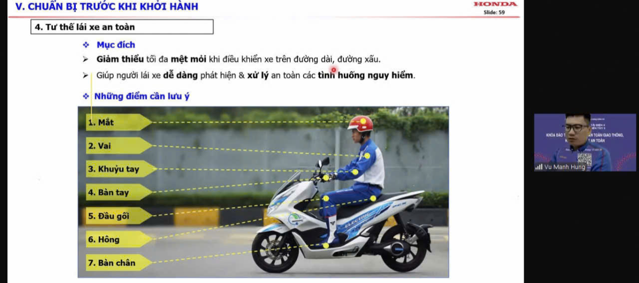 Tại lớp học, ông Vũ Mạnh Hùng – Chuyên gia đào tạo của Công ty Honda Việt Nam đã hướng dẫn 06 nội dung gồm: