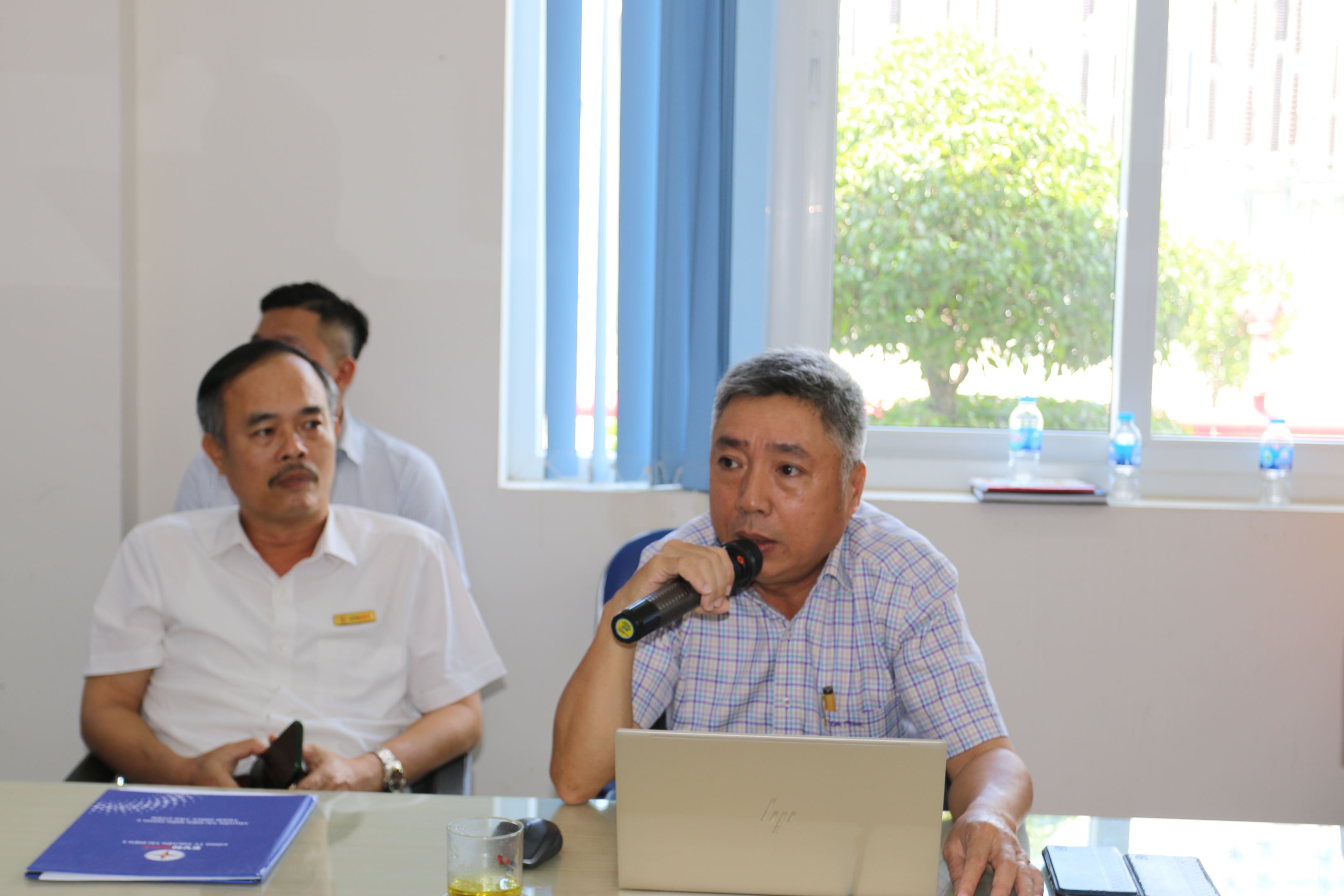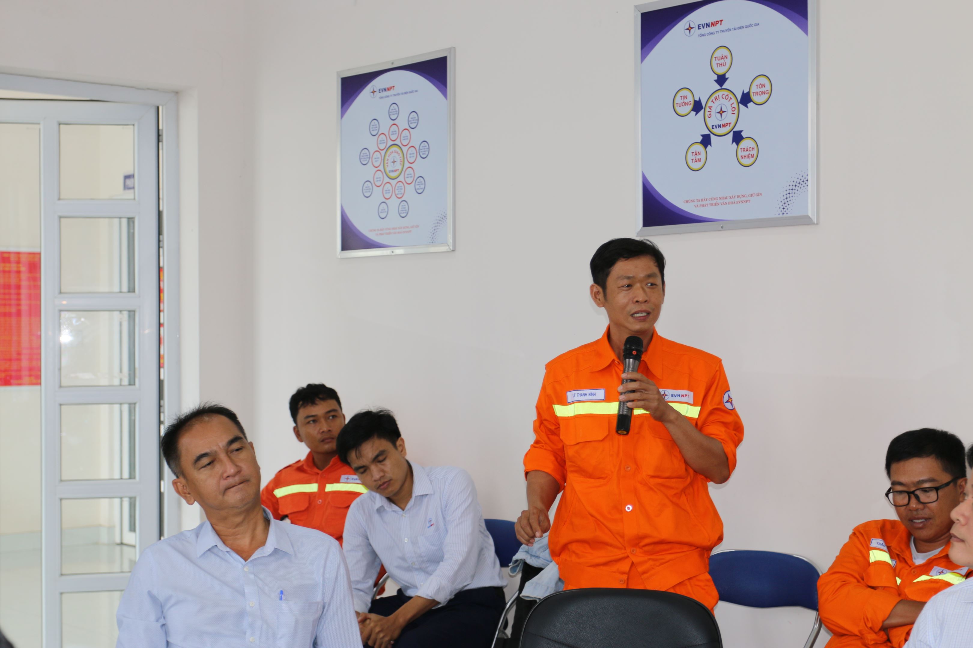 Ông Huỳnh Thanh Vũ - Trưởng trạm 500kV Long Thanh - Truyền tải điện miền Đông 1 trao đội một số khó khăn khi bay UAV kiểm tra thiết bị trạm.