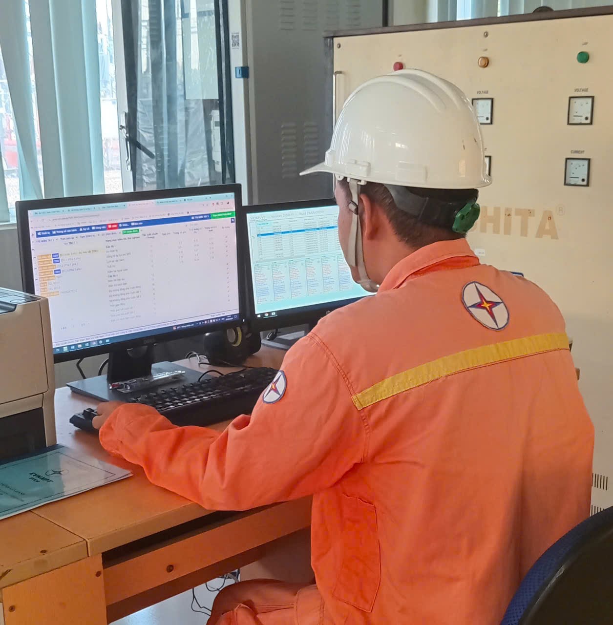 CBCNV Tổ Thao tác lưu động Kiên Bình nhập số liệu cho hệ thống CBM trên phần mềm Pmis.