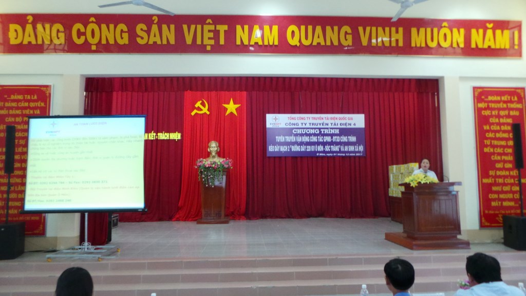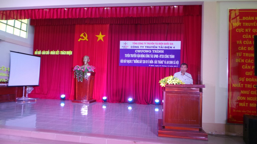 Phát biểu tại chương trình tuyên truyền, Bà Đặng Thị Hải Yến, thay mặt Công ty Truyền tải điện 4 cảm ơn Chính quyền các cấp của Quận Ô Môn đã tạo điều kiện và hỗ trợ đơn vị trong việc quản lý vận hành và bảo vệ hành lang an toàn lưới điện cao áp, đặc biệt là công tác GPMB - ĐTXD công trình “Kéo dây mạch 2 đường dây 220kV Ô Môn - Sóc Trăng", tuyên truyền vận động bà con tạo điều kiện thuận lợi để công trình này được thực hiện theo đúng tiến độ, đóng điện vận hành đúng kế hoạch.