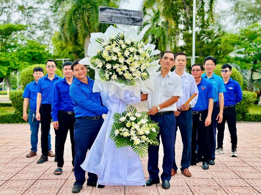 Các đồng chí Đảng viên, Đoàn viên chi đoàn Truyền tải điện Thành phố Hồ Chí Minh thành kính dâng hoa tưởng nhớ công lao của các Anh hùng liệt sĩ.