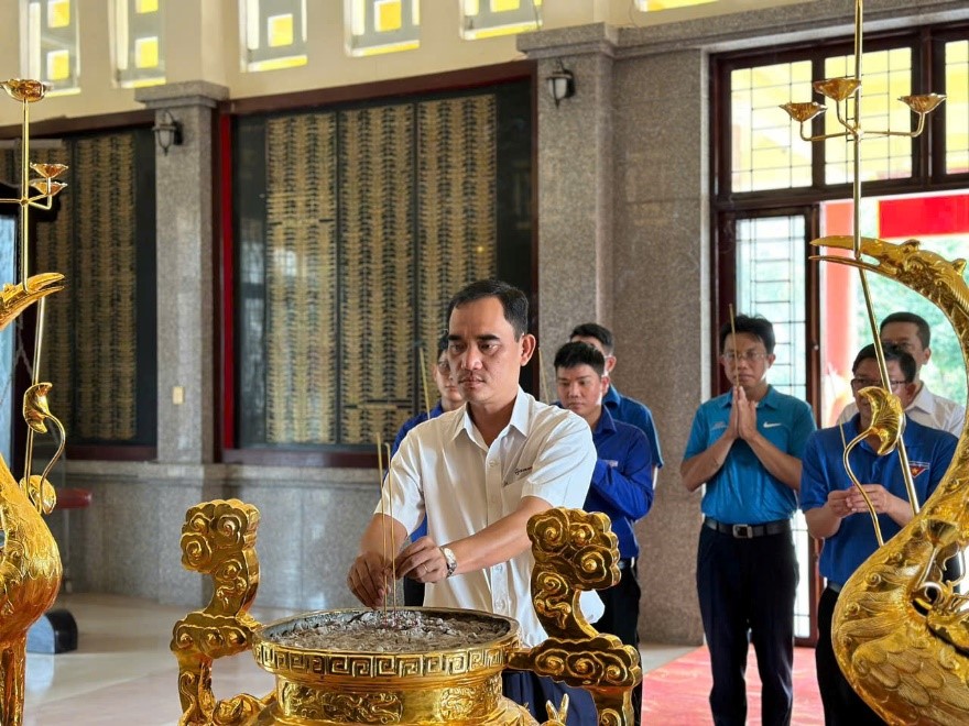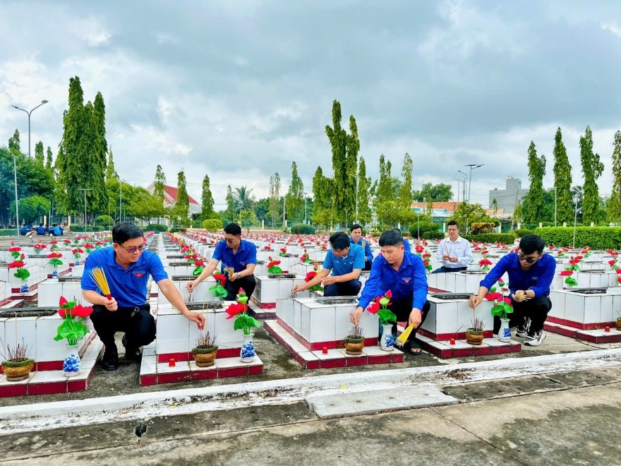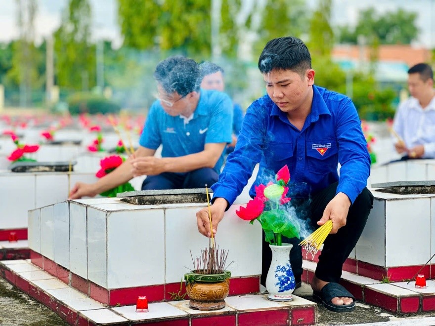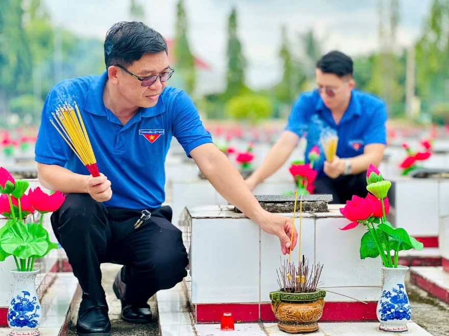 Đoàn viên thanh niên Truyền tải điện Thành phố Hồ Chí Minh dâng hương tại phần mộ các liệt sĩ.