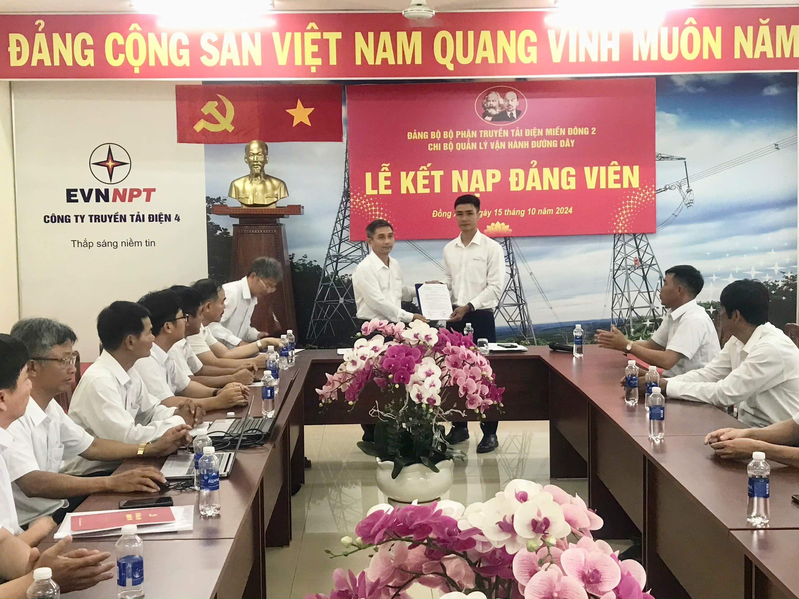 Đại diện Chi bộ, đồng chí Nguyễn Văn Lịch chúc mừng các đồng chí được kết nạp đợt này, đồng thời nêu rõ nhiệm vụ, quyền của người Đảng viên. Phân công đảng viên chính thức giúp đỡ đảng viên dự bị tiếp tục tu dưỡng, rèn luyện đạo đức, chuyên môn, trách nhiệm của một người đảng viên, tham gia cùng với Chi bộ hoàn thành xuầt sắc nhiệm vụ được giao, phấn đấu trở thành đảng viên chính thức. Đóng góp cùng với Chi bộ QLVH đường dây xây dựng Đảng bộ bộ phận Truyền tải điện miền Đông 2, Đảng bộ Công ty Truyền tải điện 4 trong sạch, vững mạnh.