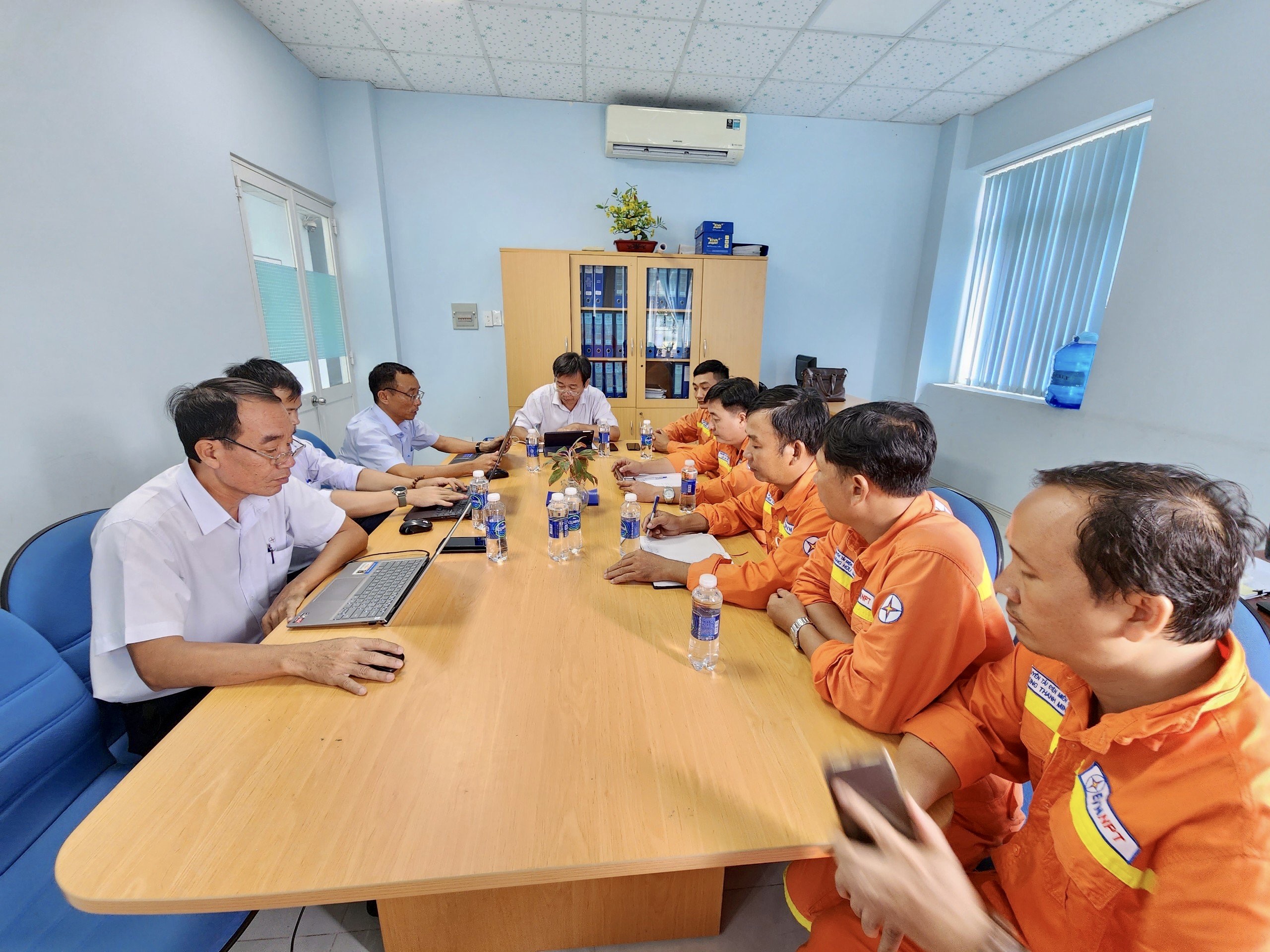 Lãnh đạo Truyền tải điện Miền Đông 1 họp triển khai và phân công nhiệm vụ cho Đội Truyền tải điện ứng dụng Khoa học công nghệ của đơn vị.